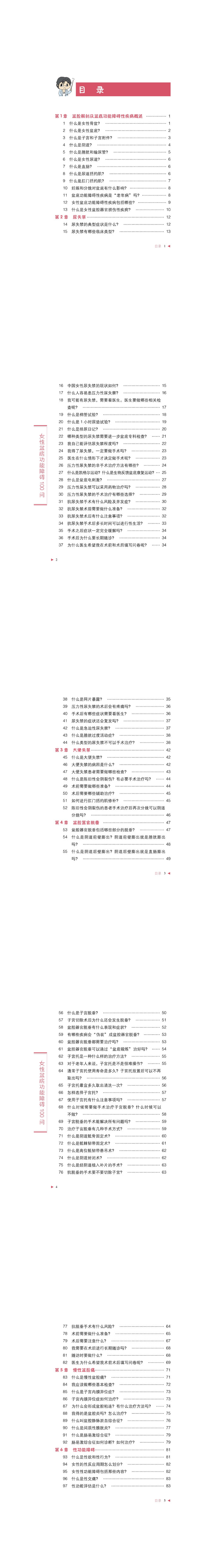 本书是一本关于女性盆底功能障碍的科普书籍,围绕100个关于盆底功能障碍的常见问题进行阐述,包括尿失禁、大便失禁、盆腔器官脱垂、慢性盆腔痛、女性性功能障碍等,实用性强、通俗易懂,便于读者理解和阅读。同时,年轻的妇产科医师、护士及其他专业的医护人员通过本书也可清楚地了解这些问题所包含的专业知识,以便于更好地为大众提供通俗易懂的专业咨询和卫生保健知识。