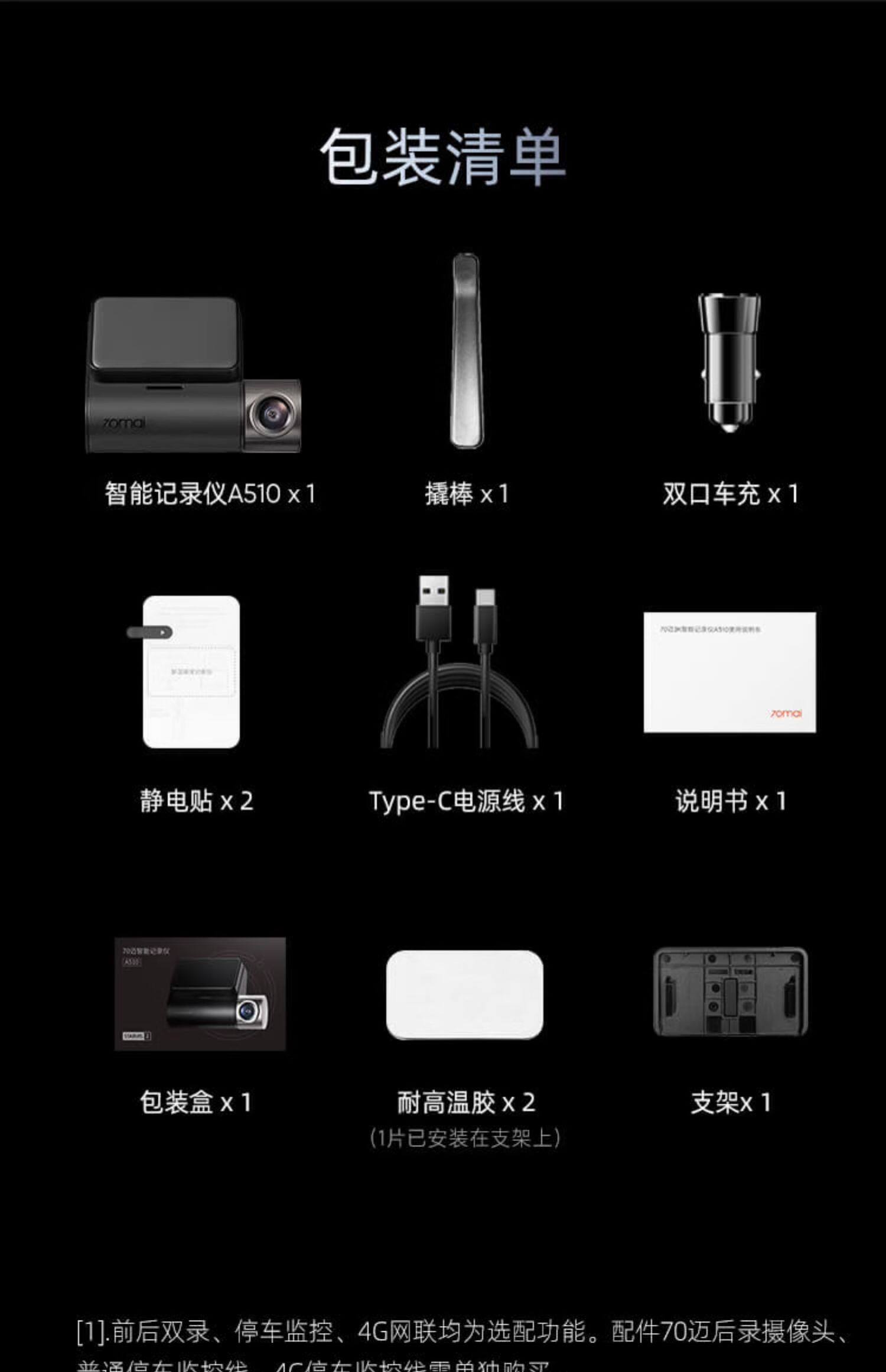 70迈智能AI行车记录仪A510 1944P超高清夜视