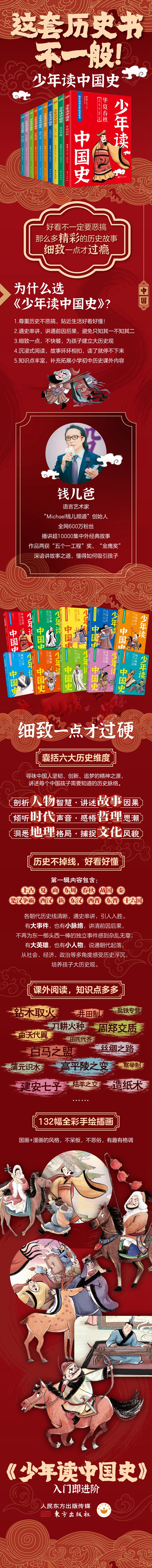 《少年读中国史(第一辑,全10册)》四色全彩印刷、132幅手绘插画、附赠钱儿爸历史系列音频