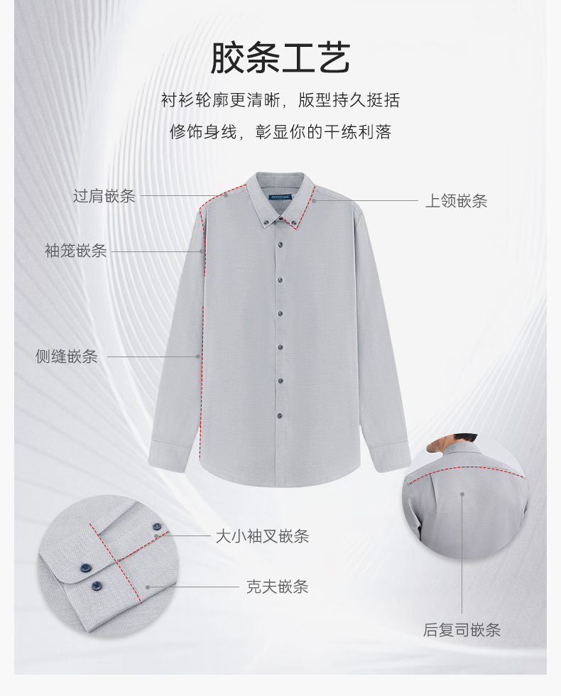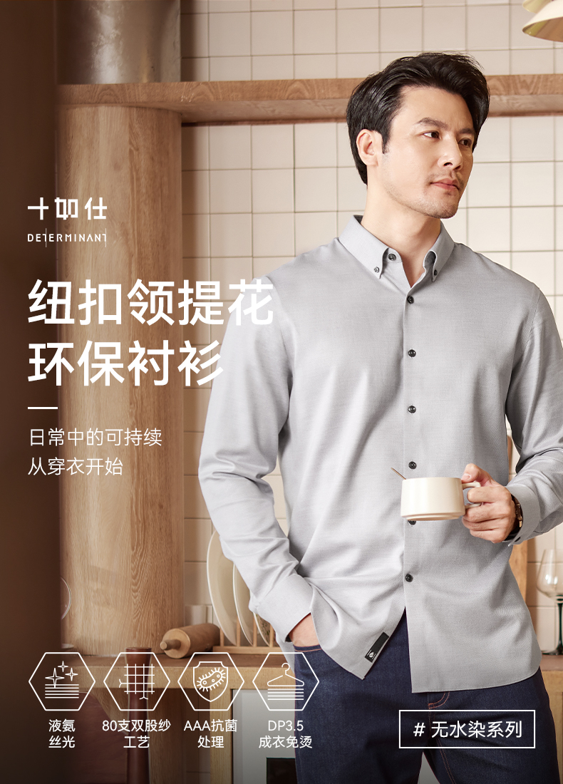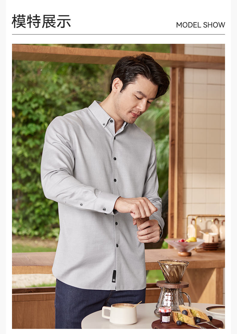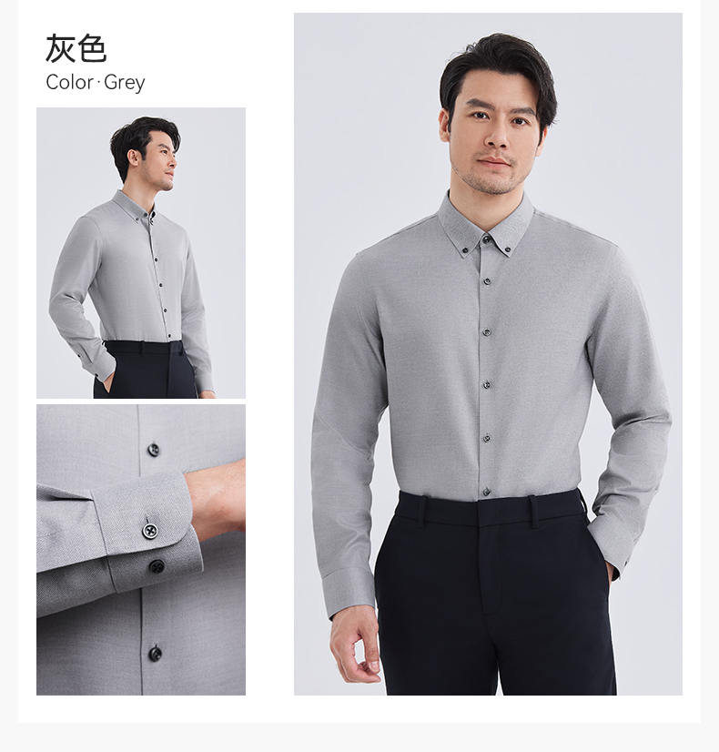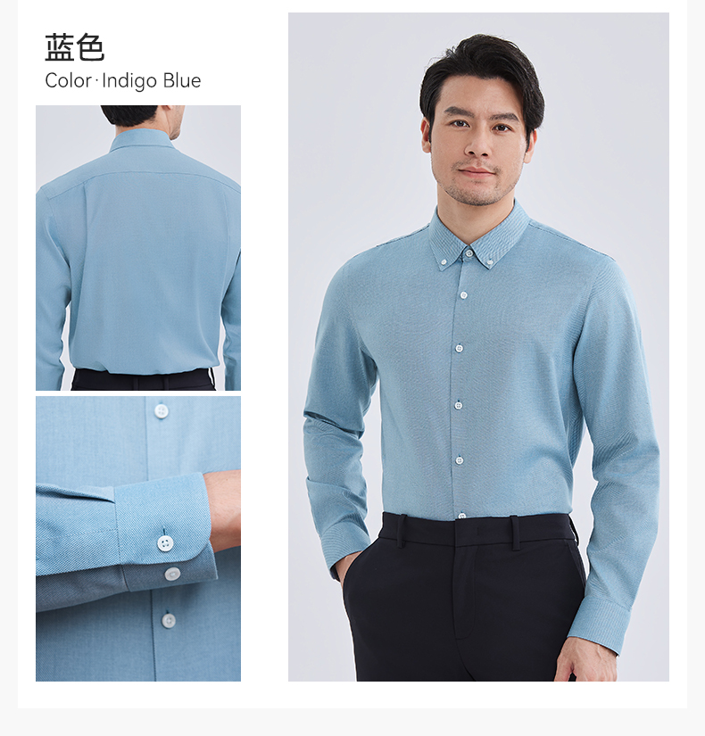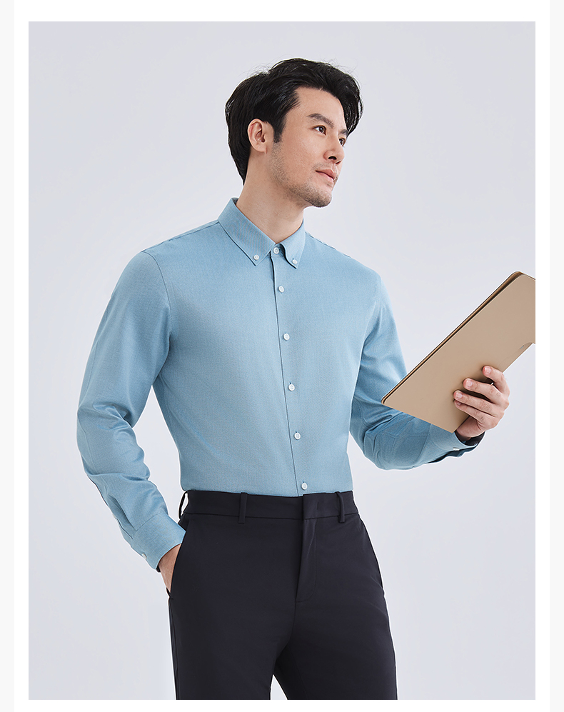 十如仕领嘴钮领提花环保无水染色长袖衬衫-SS05-01