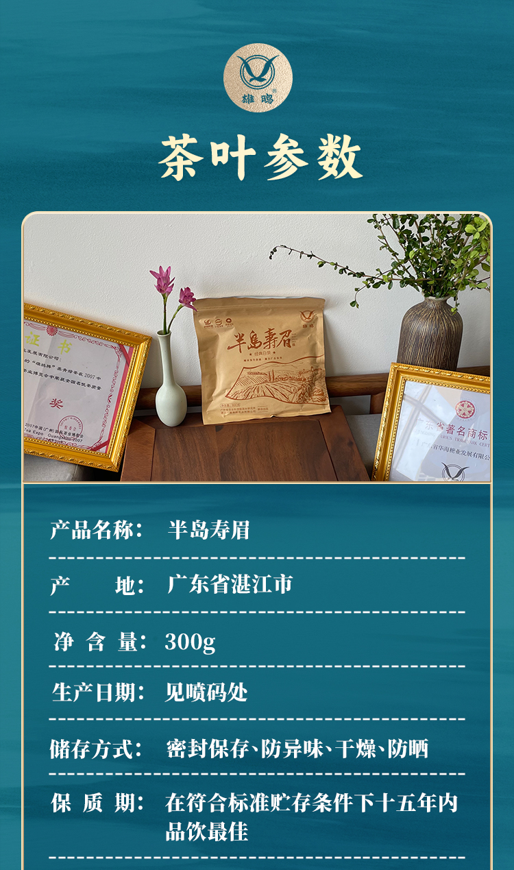 【中国农垦】雄鸥半岛寿眉白茶300克