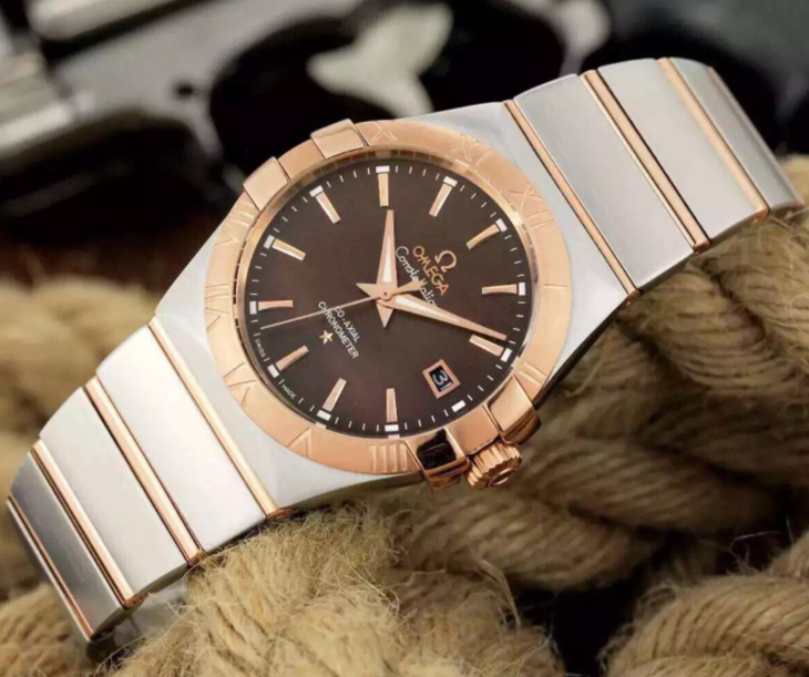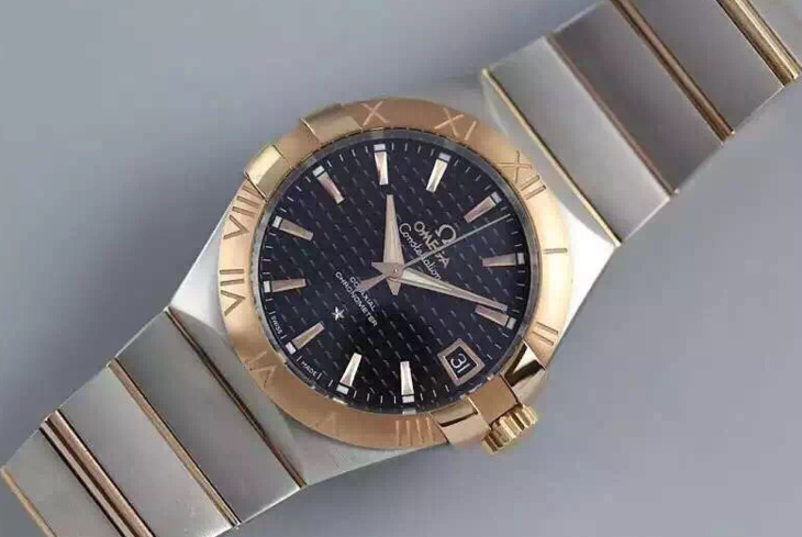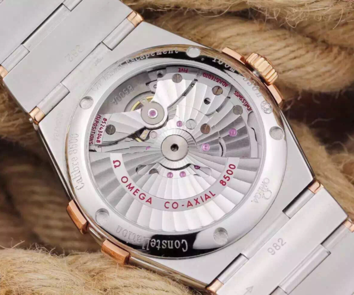 V6欧米茄星座系列123.20.38.21.52.002机械男士手表,大号38.5mm,小号35.5mm。精钢镀18k表链表壳,8500全自动机械机芯,蓝宝石镜面,具备诸多新颖设计元素。