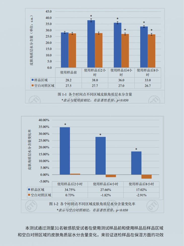 正常来讲角质层含水量在15%-20%时最有利于皮肤对大多数护肤品中功效成分的吸收。