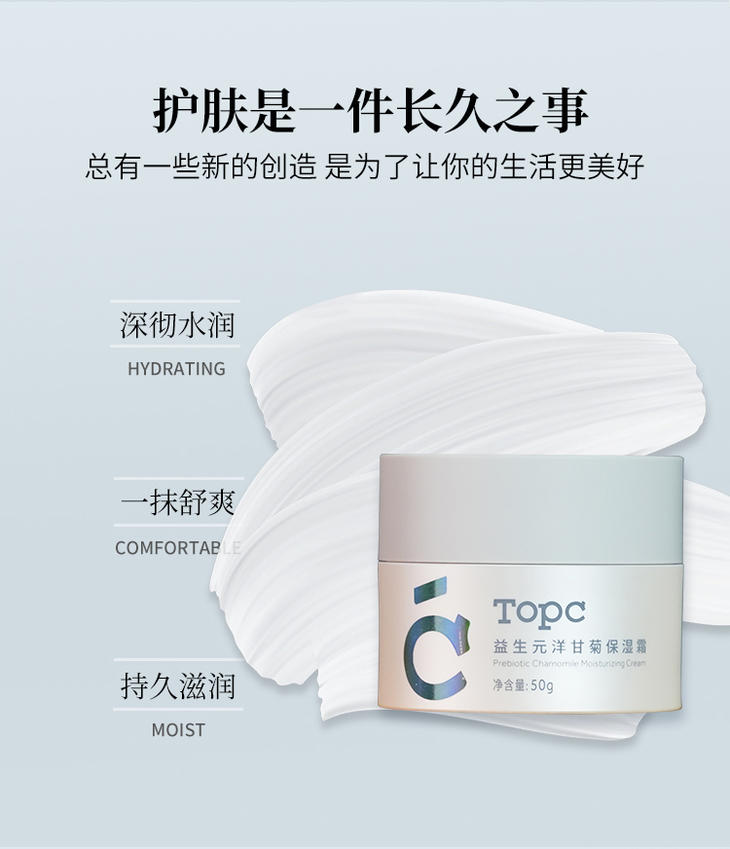 【保湿霜】【补水霜】TOPC益生元洋甘菊保湿霜 清爽补水,可厚涂当睡眠面膜