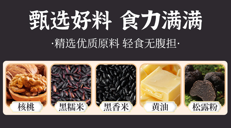 【食力满满❗️黑松露核桃糕】精选优质原料制作,核桃/黑糯米/黑香米/黄油/松露,传承古法匠心制作,好吃轻食无负担,早餐代餐下午茶饱腹食品传统茶点L