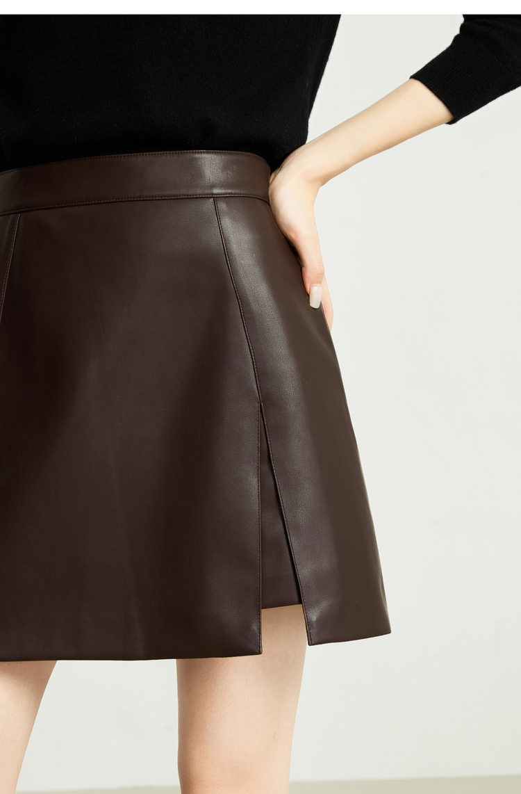 【10/15新品】熙世界【柔韧PU皮】复古咖色小皮裙短裙女2025秋冬新款a字半身裙