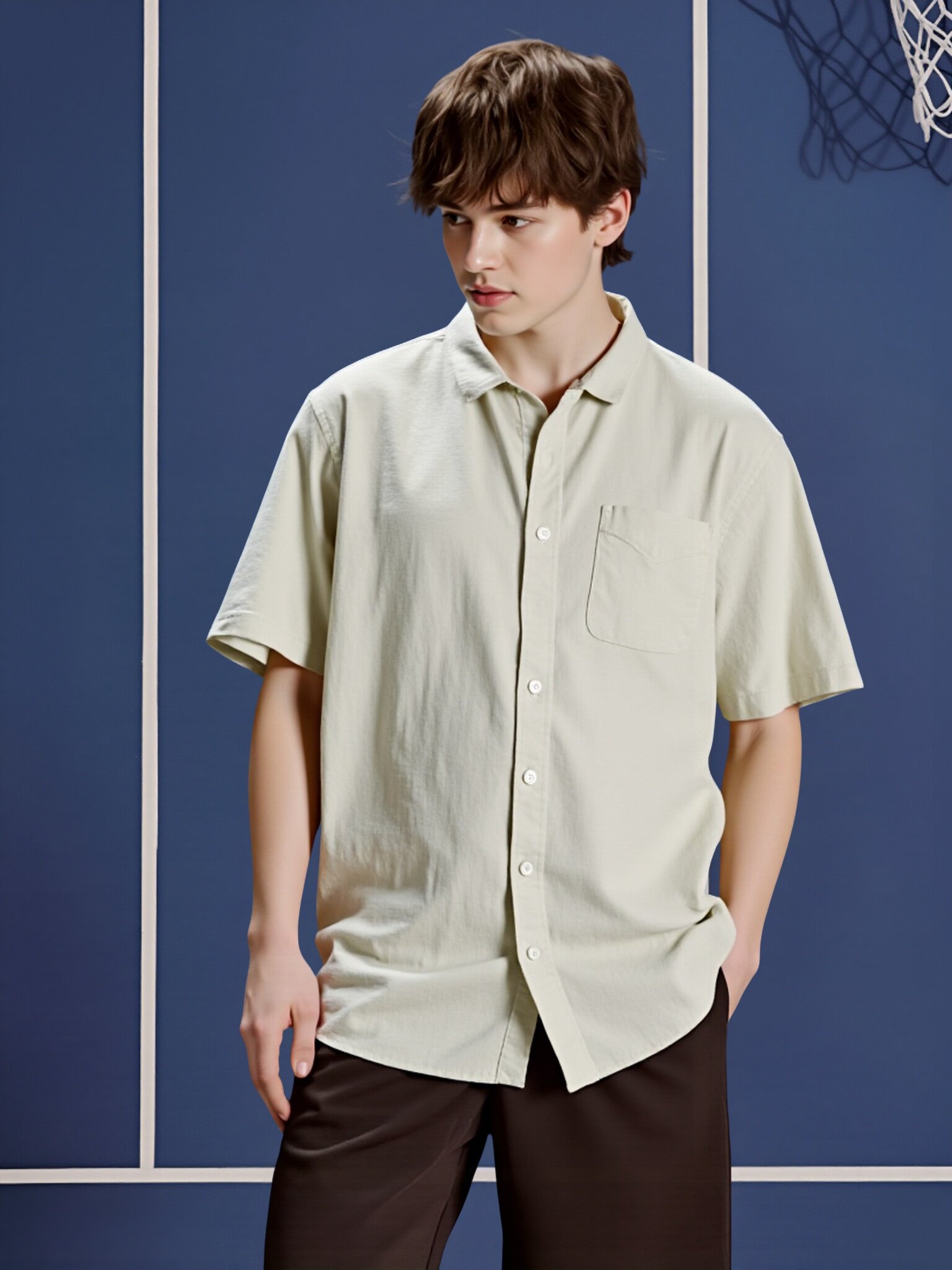 佐丹奴男装25年新款棉麻短袖衬衫01045202