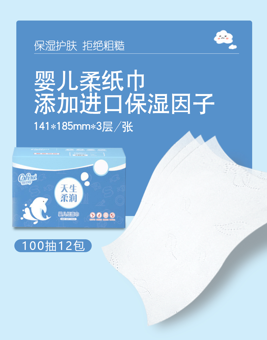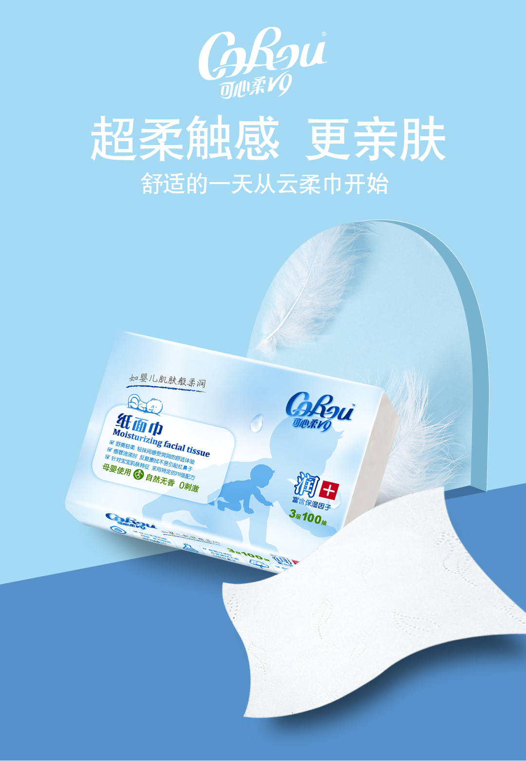 可心柔V9婴儿纸巾抽纸保湿纸100抽12包乳霜纸餐巾纸