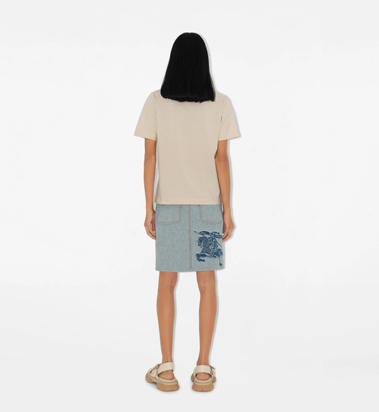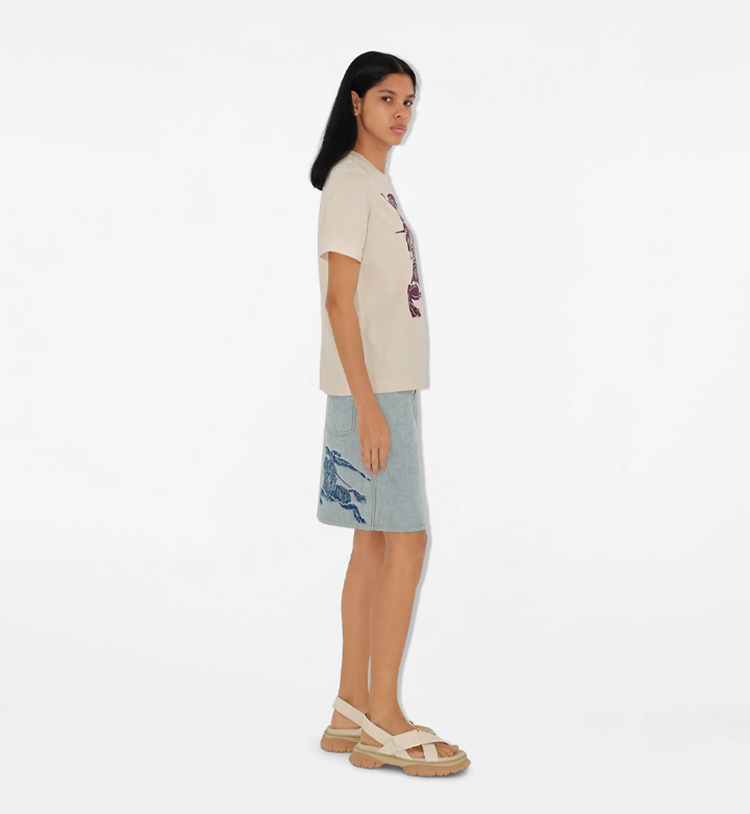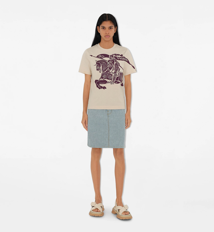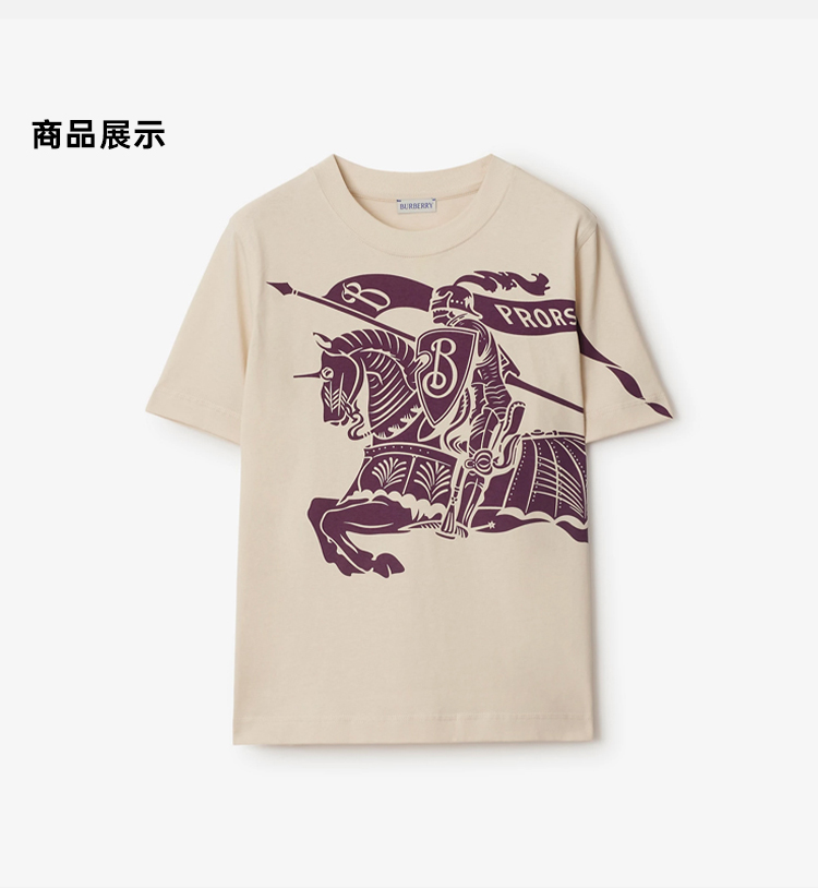 BURBERRY 巴宝莉 女士马术骑士徽标印花棉质圆领短袖T恤 米色 8096379 C1403