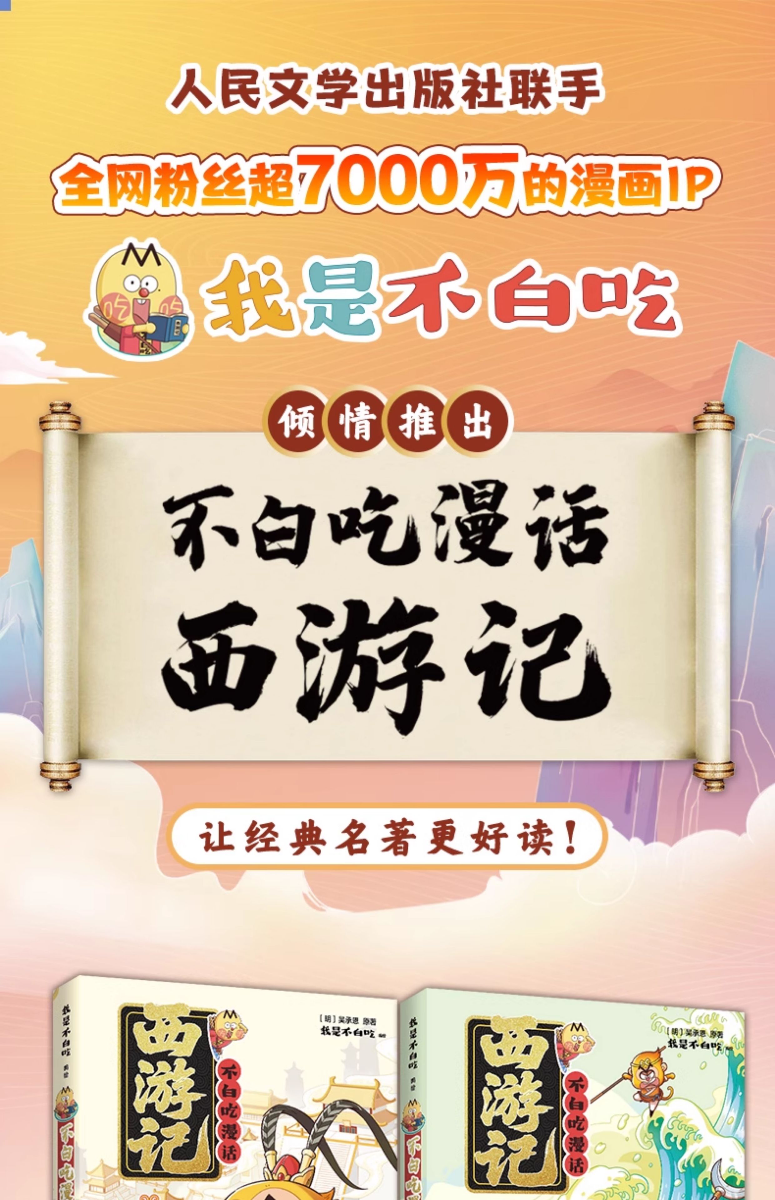 不白吃漫话西游记套装自营盖章版吴承恩原著我是不白吃编绘漫画名著阅读人民文学出版社店长推荐