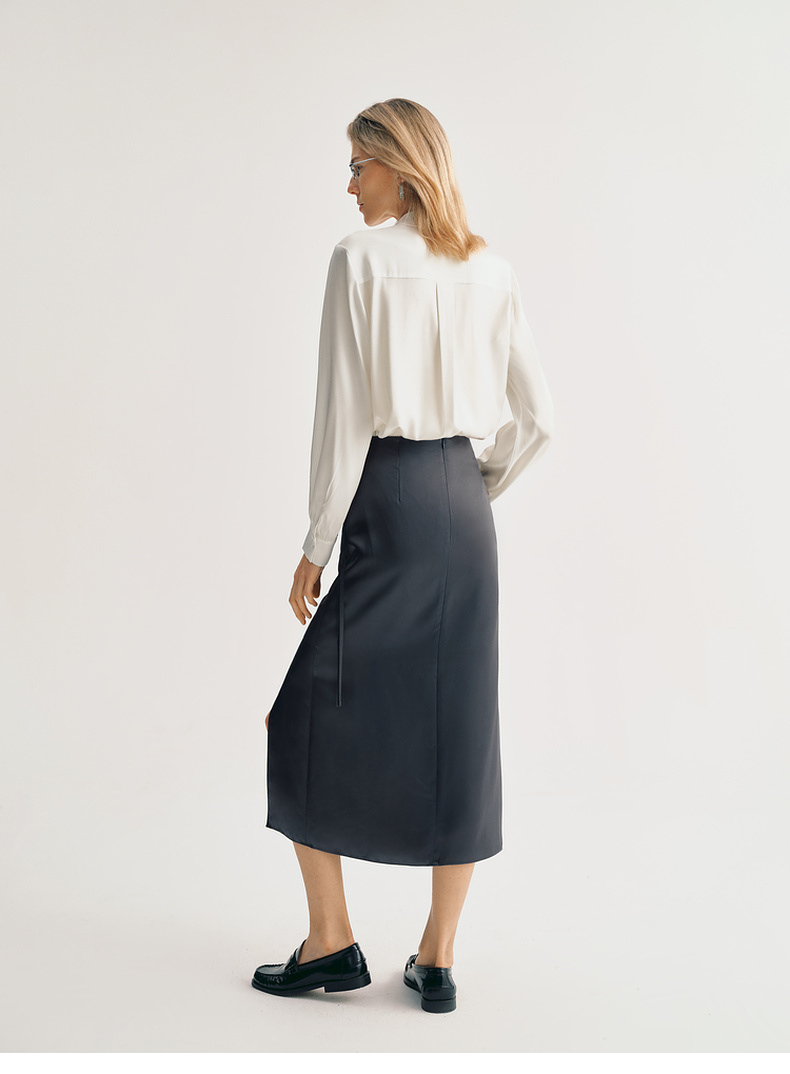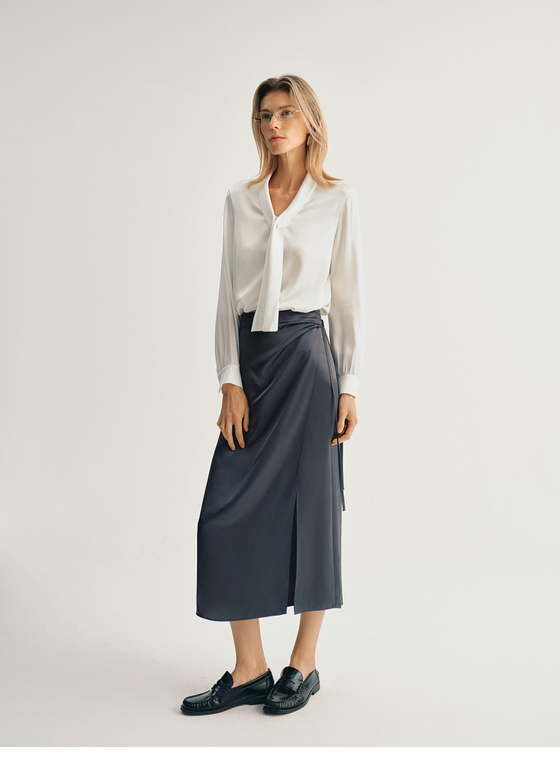 【严选】诗凡黎气质飘逸白色半身裙25夏新款高腰a字显瘦中长小个子百褶裙7G4240161