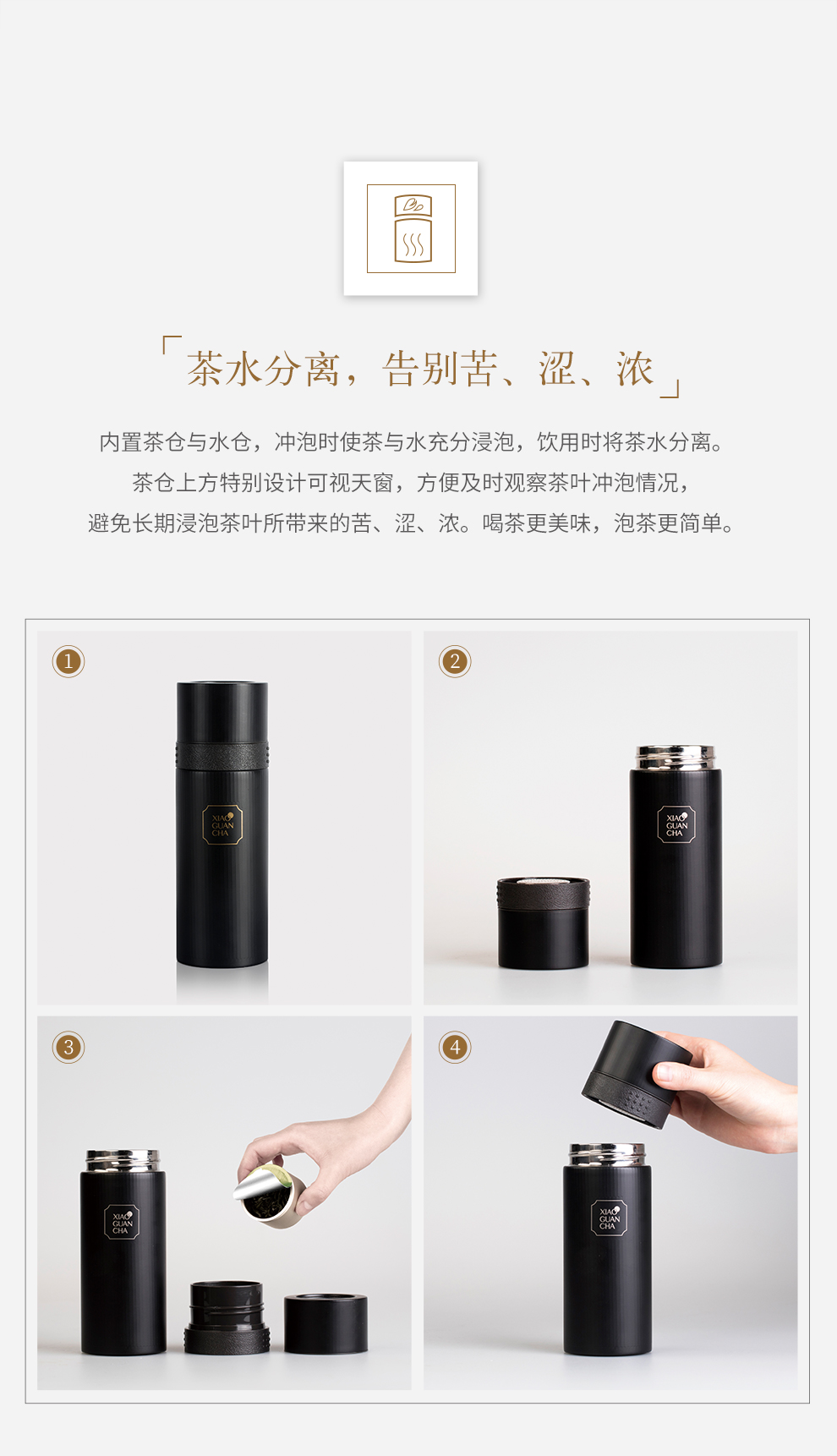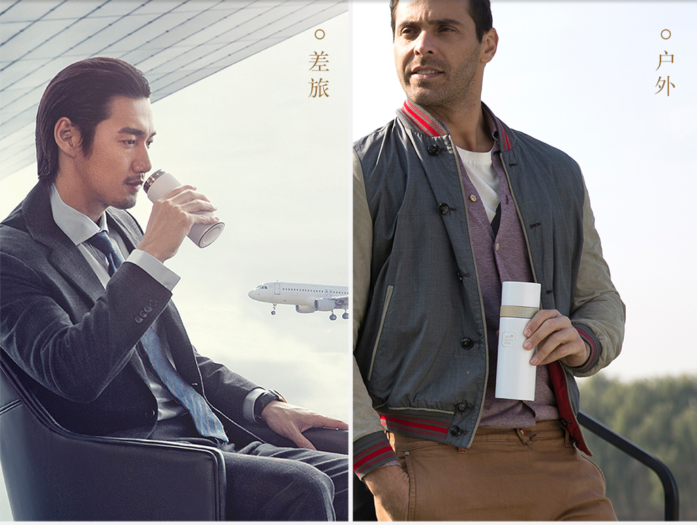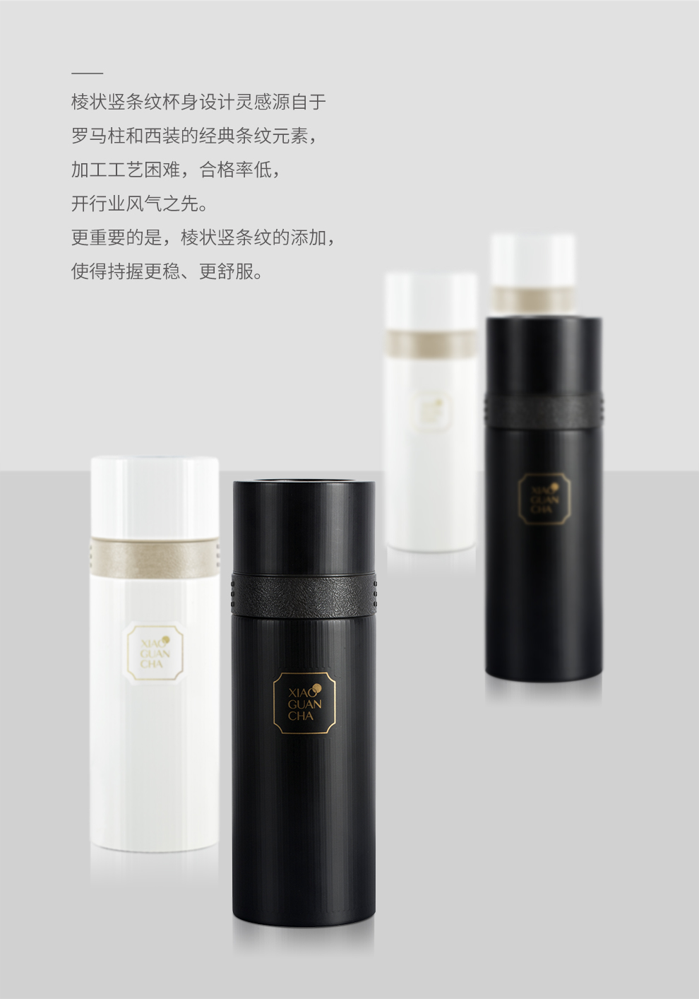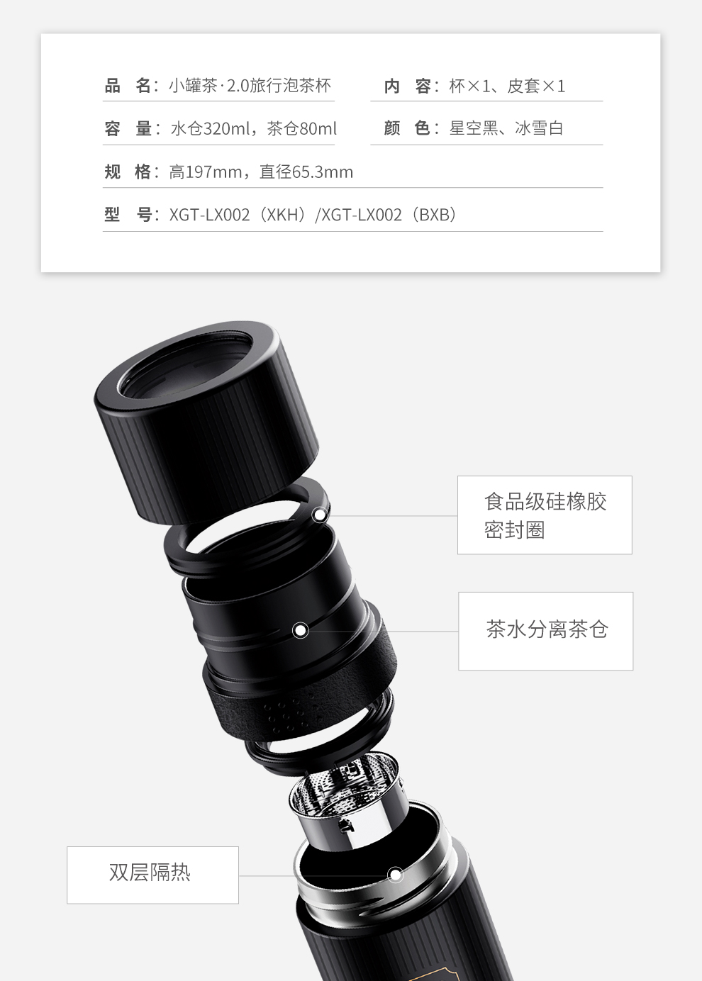 小罐茶 2.0旅行泡茶杯 冰雪白/星空黑 320ml 双层杯身 长效保温 经典条纹元素 48小时发货