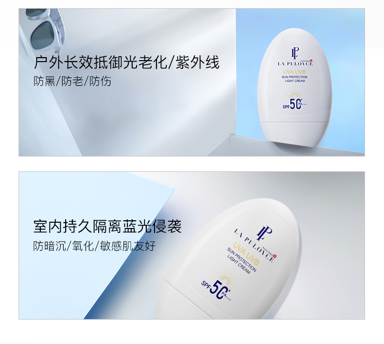 【限定礼盒】lapulovce拉普瑞斯羽柔清爽水润保湿防晒霜50ml*3瑞士进口防晒