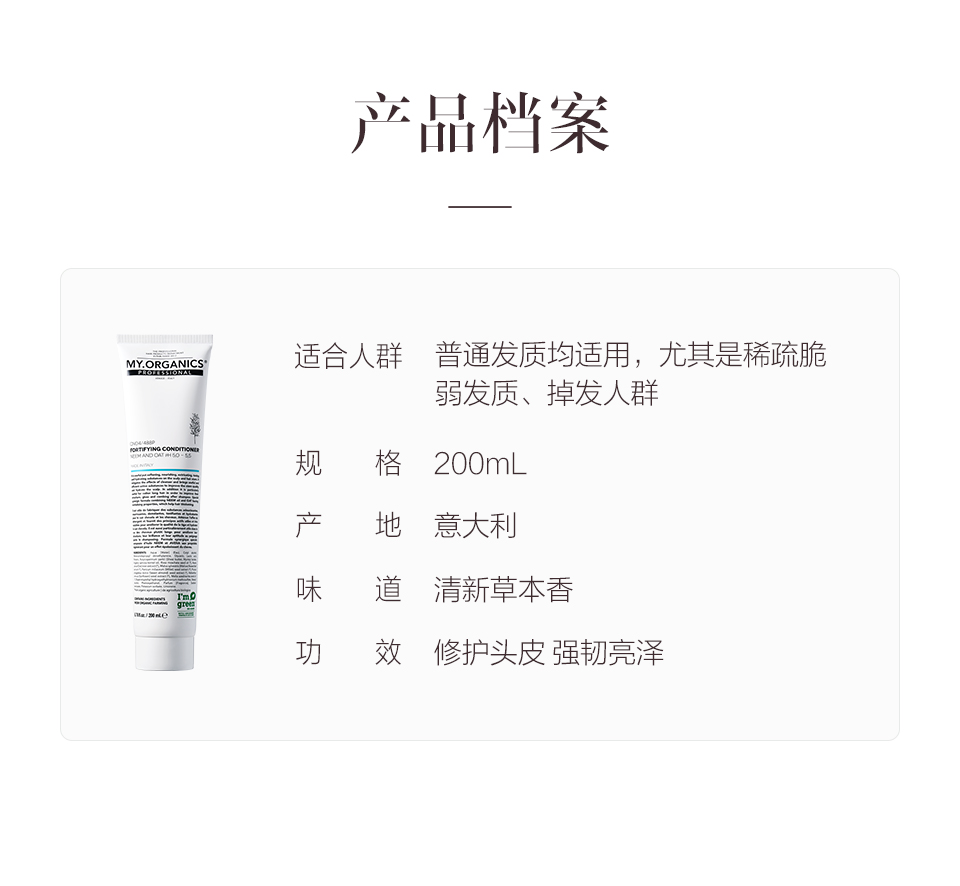 保税直发 MY.ORGANICS 有机强韧护发素 200mL【新旧包装随机发货】