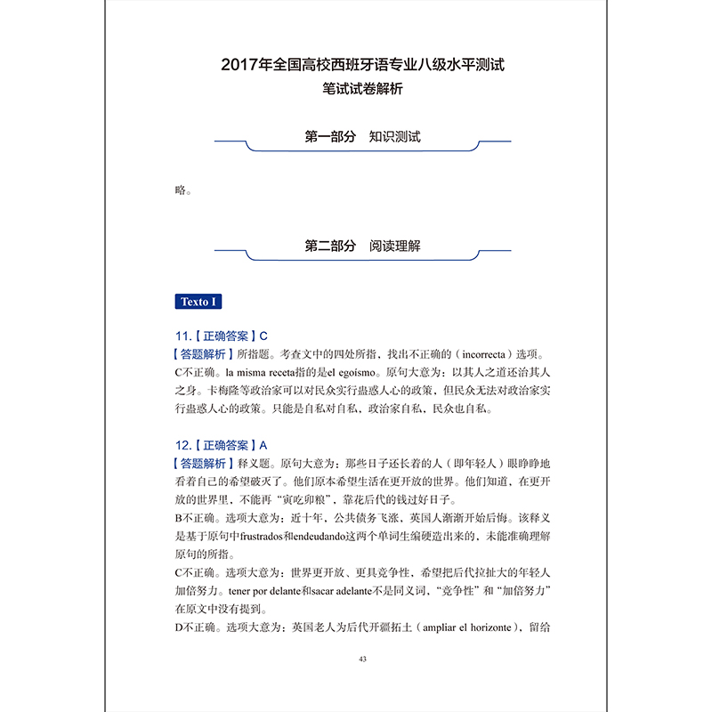 全国高校西班牙语专业八级水平测试样题 笔试试卷解析