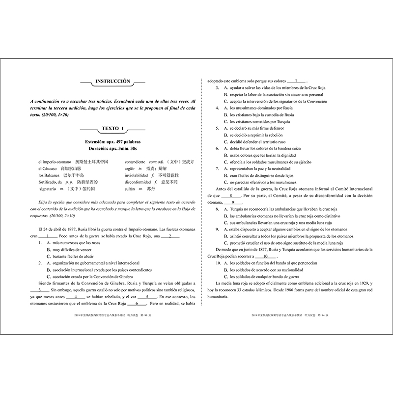 2019 年全国高校西班牙语专业八级水平测试 笔试试卷解析