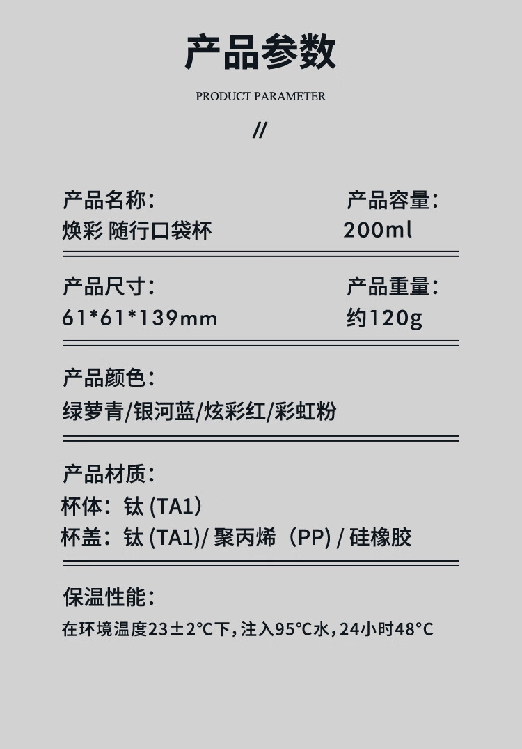 TAIC太可纯钛保温水杯咖啡口袋杯迷你随身便携超轻小巧轻便礼物