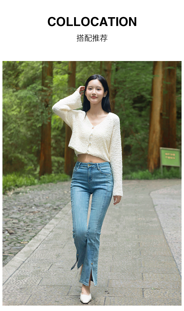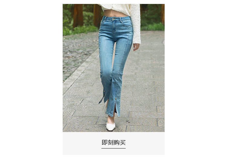 oldcolour蓝色牛仔裤夏季新款高腰显瘦时尚开叉微喇裤女P21113176