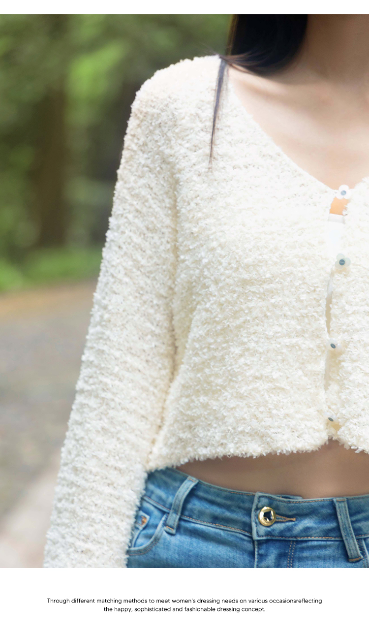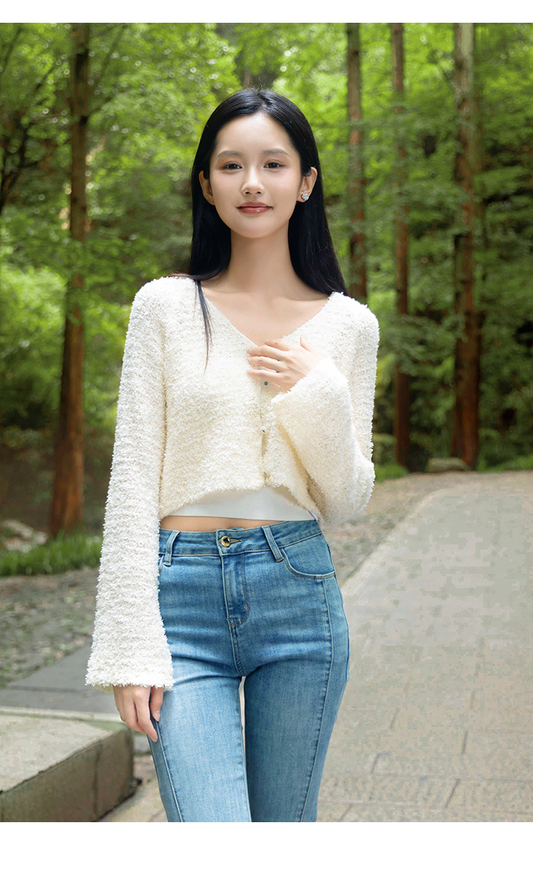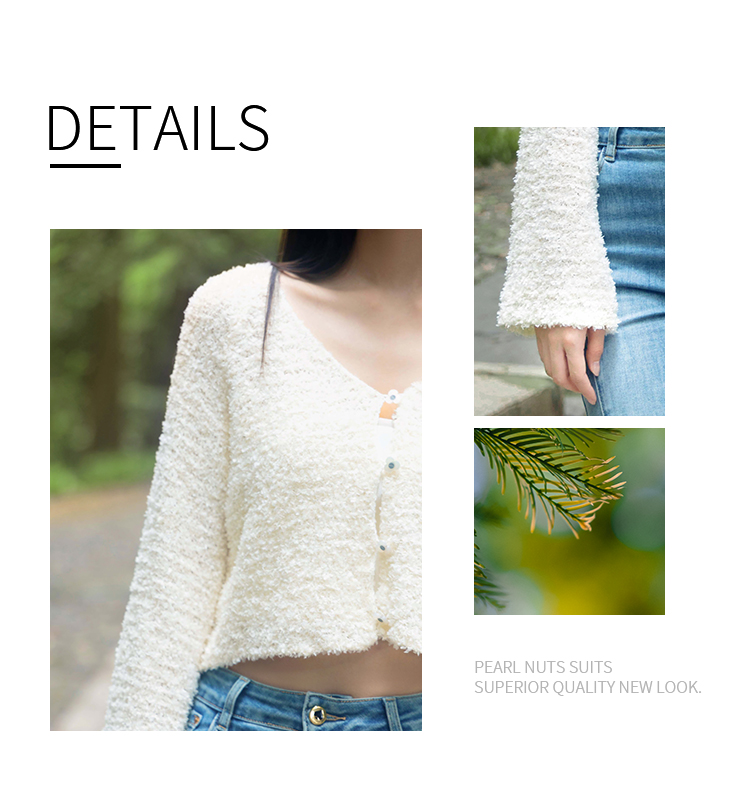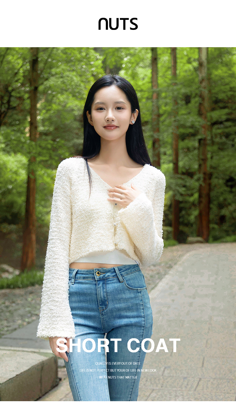 NUTS秋季新款时尚长袖V领修身短款开衫针织衫上衣女潮4310501A1