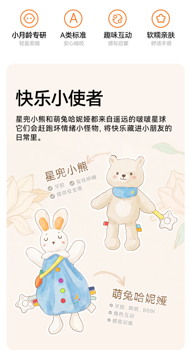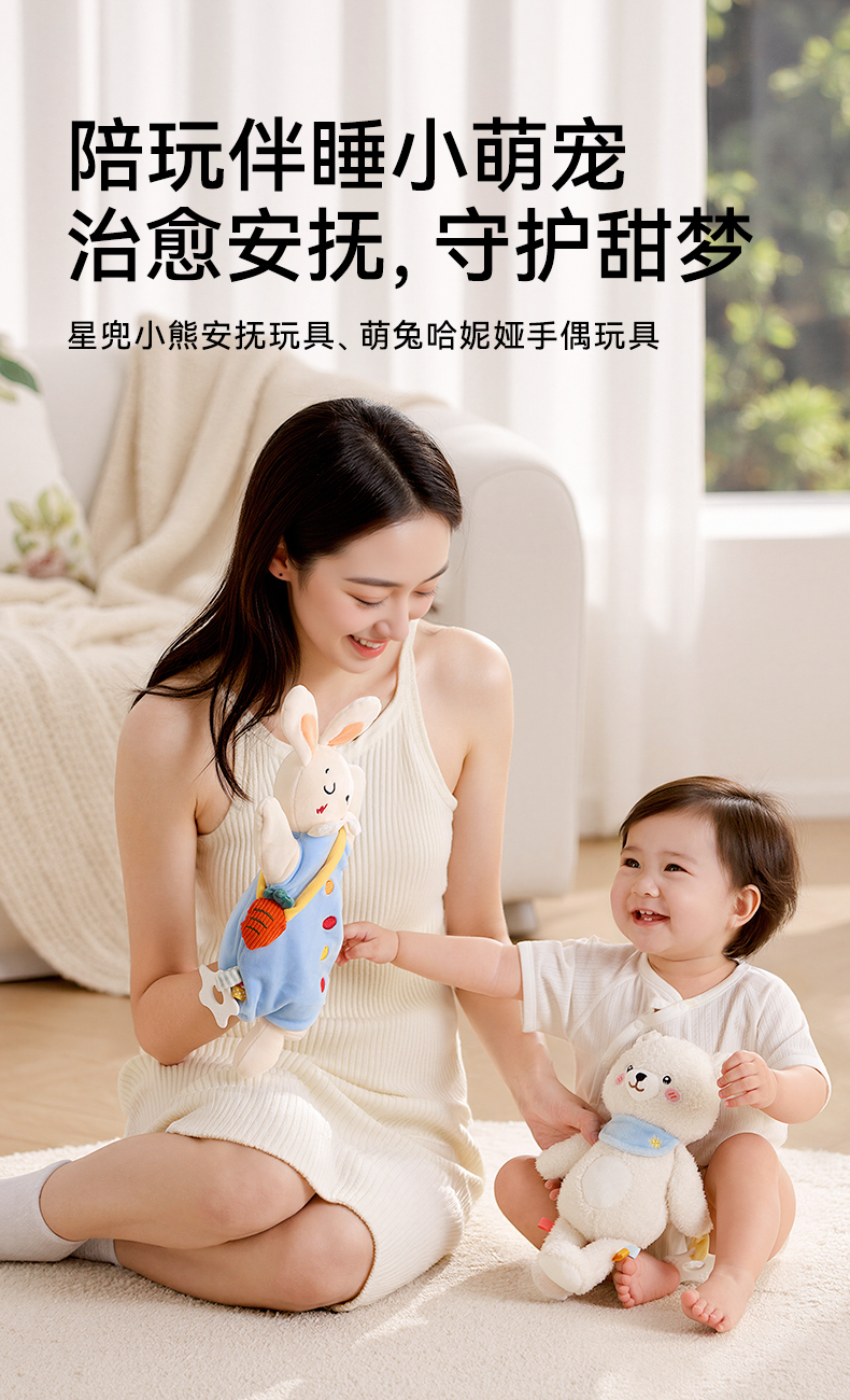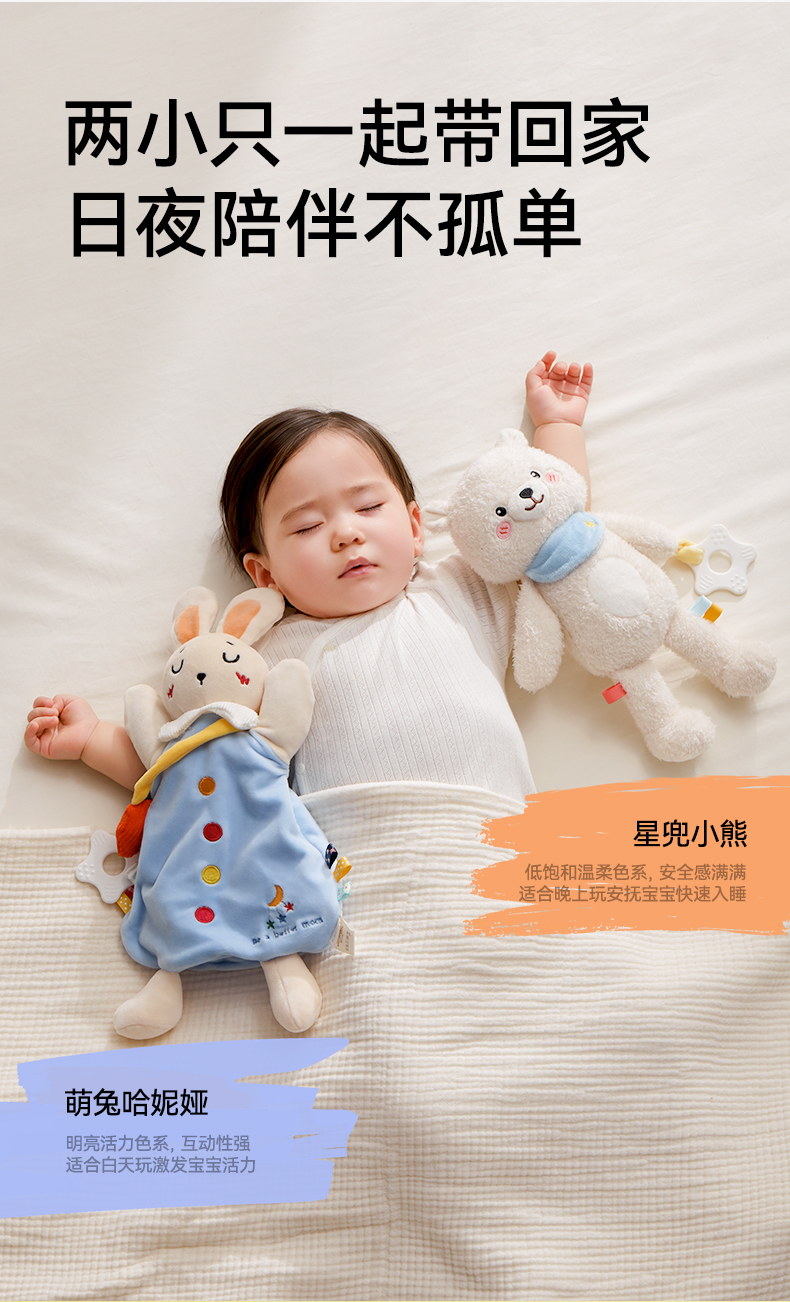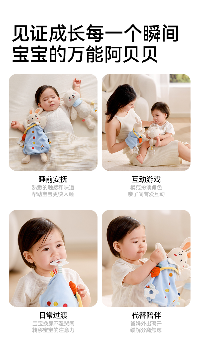 宝宝睡觉防惊跳安抚玩偶阿贝贝可啃咬婴幼儿玩具新生礼盒