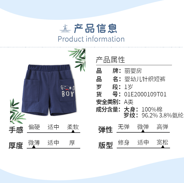 丽婴房-童衣类(夏)E1短裤\裤裙深蓝\藏青