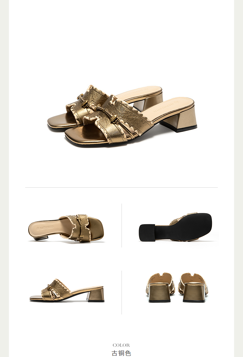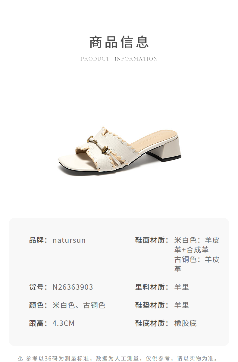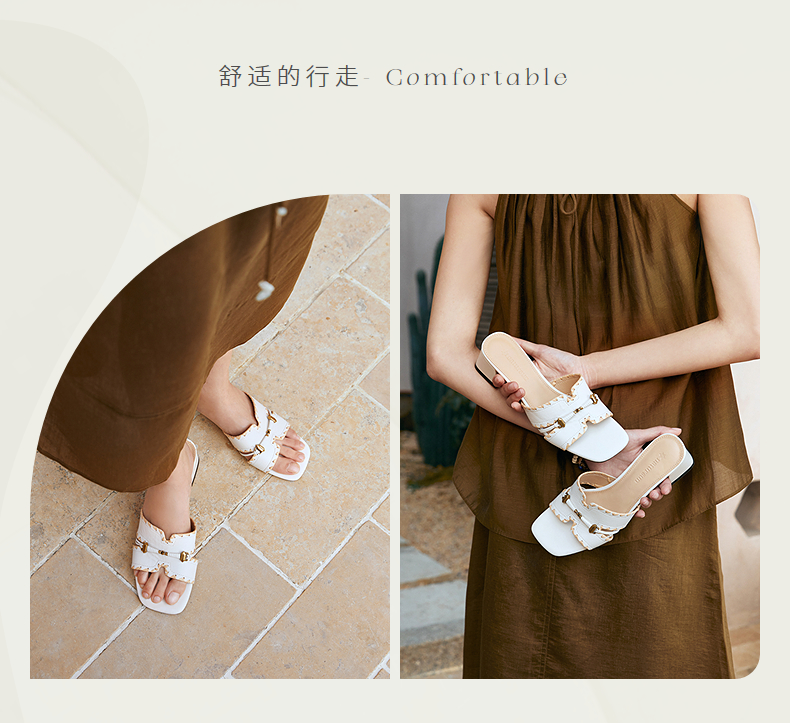 【上新】natursun夏季粗跟一字拖2026新款外穿女法式复古风方头休闲凉拖鞋N26363903