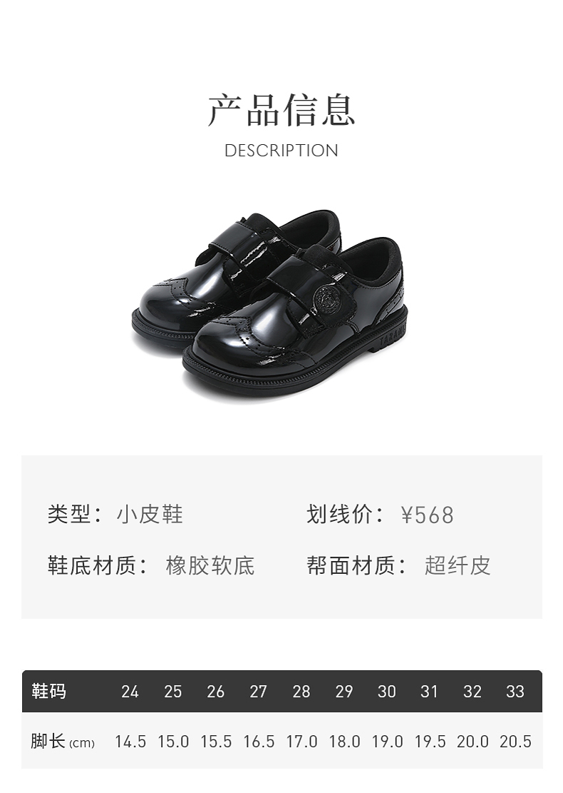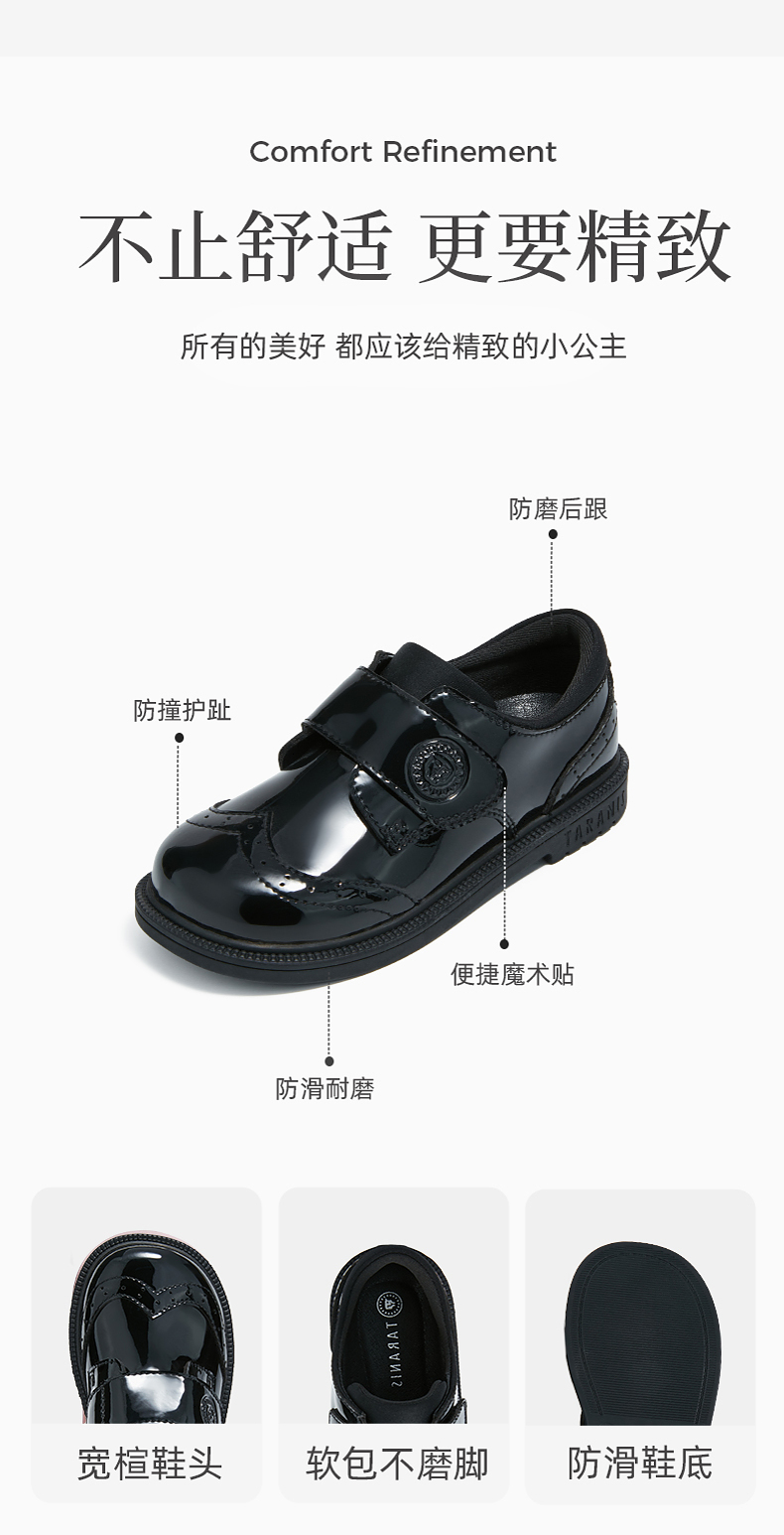 泰兰尼斯meta春季新款女童皮鞋软底公主小皮鞋儿童英伦风演出单鞋 M03X5A6016