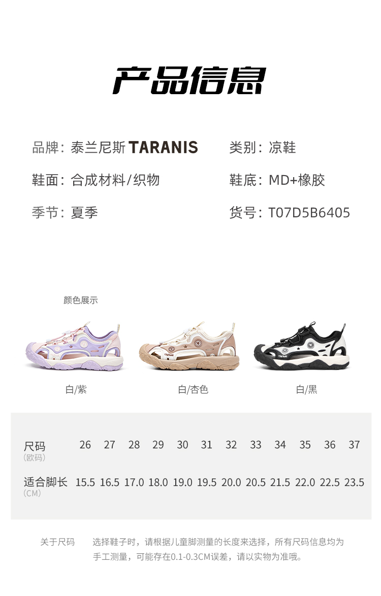 泰兰尼斯夏季中大童百搭速干透气溯溪鞋凉鞋T07D5B6405