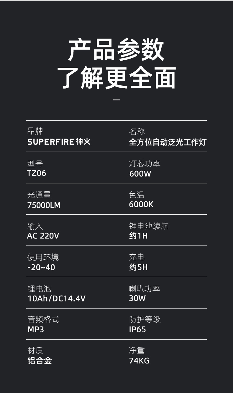 神火TZ06全方位自动泛光工作灯600瓦大功率专业工地道路维修灯