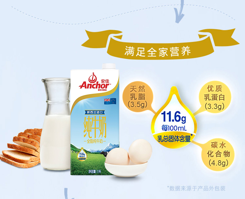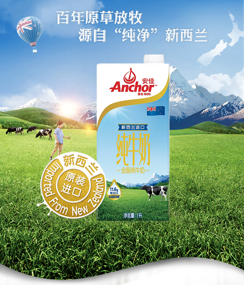新西兰安佳全脂/低脂牛奶1L 天然牧场优质奶源清甜真实味 025473/025474