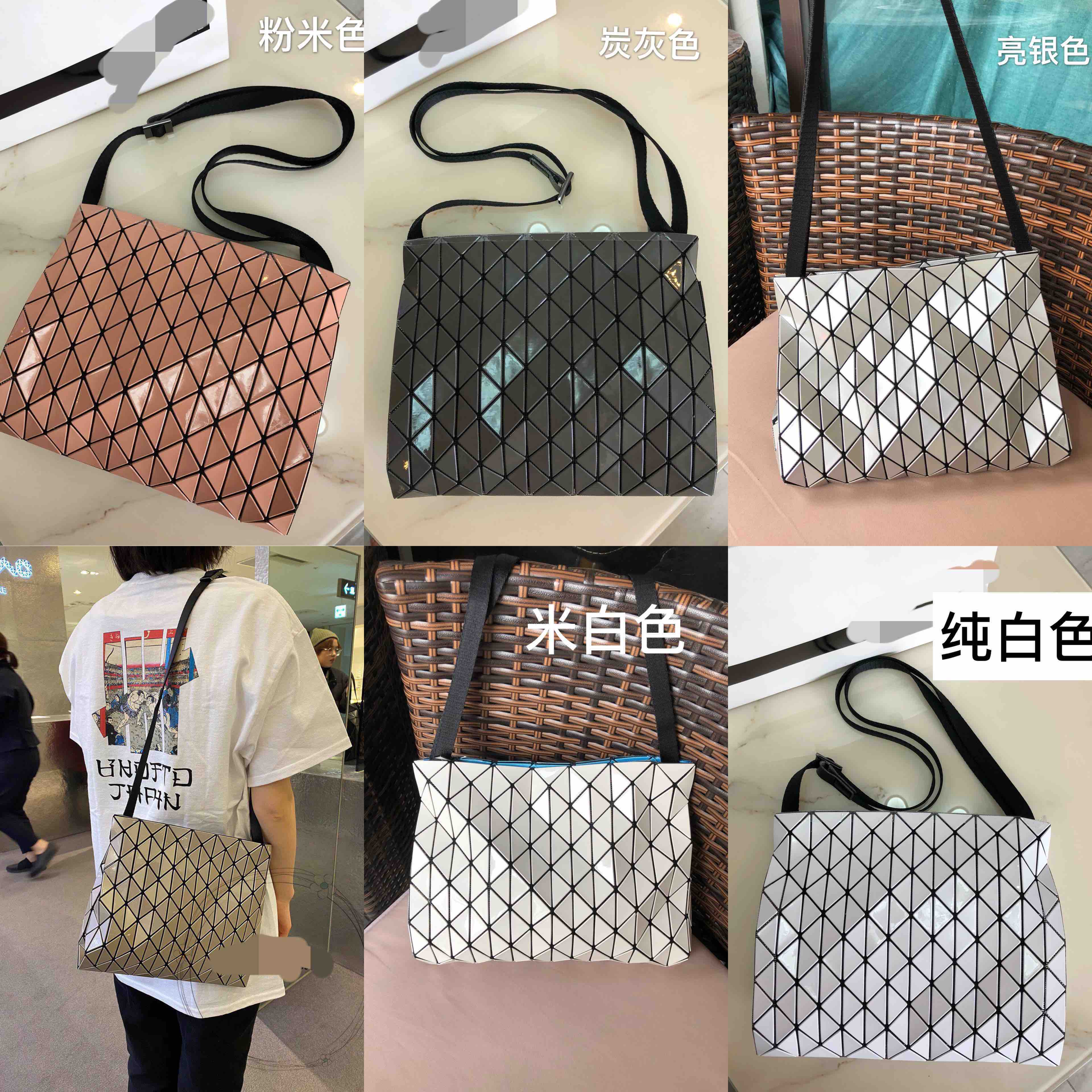 三宅新款 横竖格拼接 单肩斜挎包 肩带无极调节
