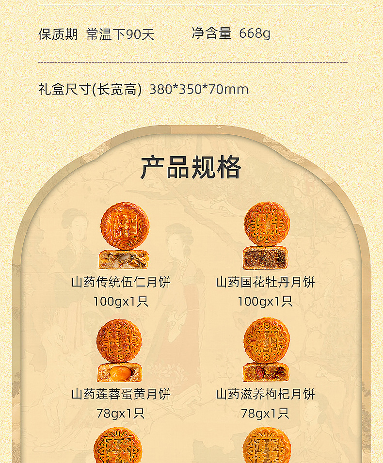 【铁棍山药无蔗糖月饼】中秋高档礼盒装 传统五仁大月饼木糖醇月饼