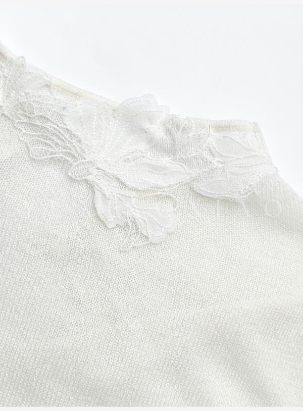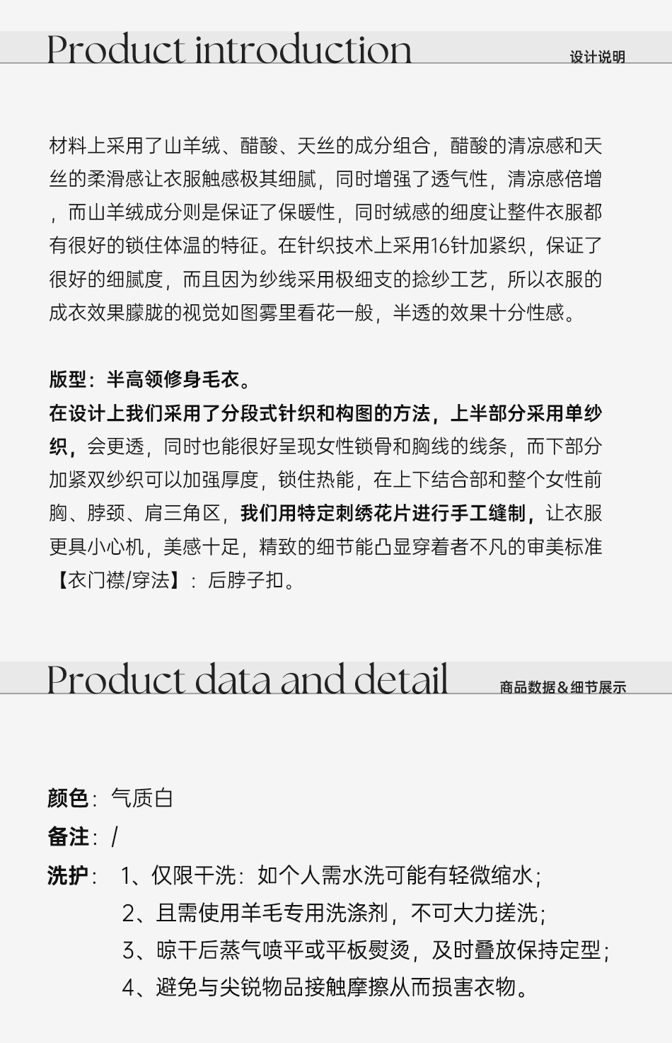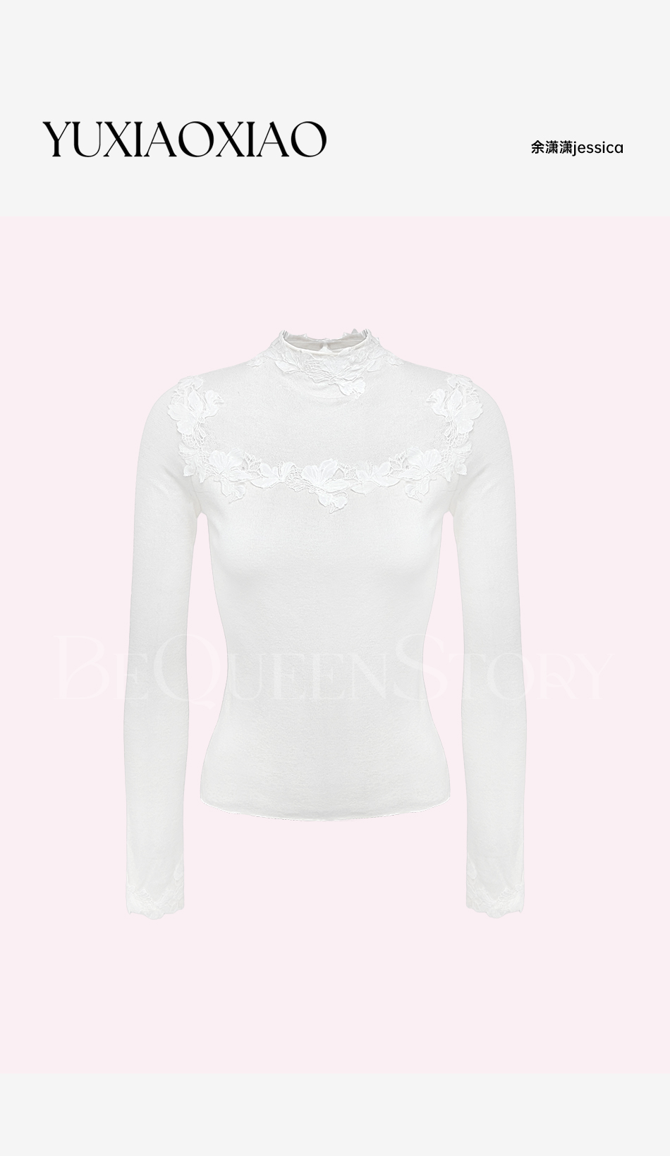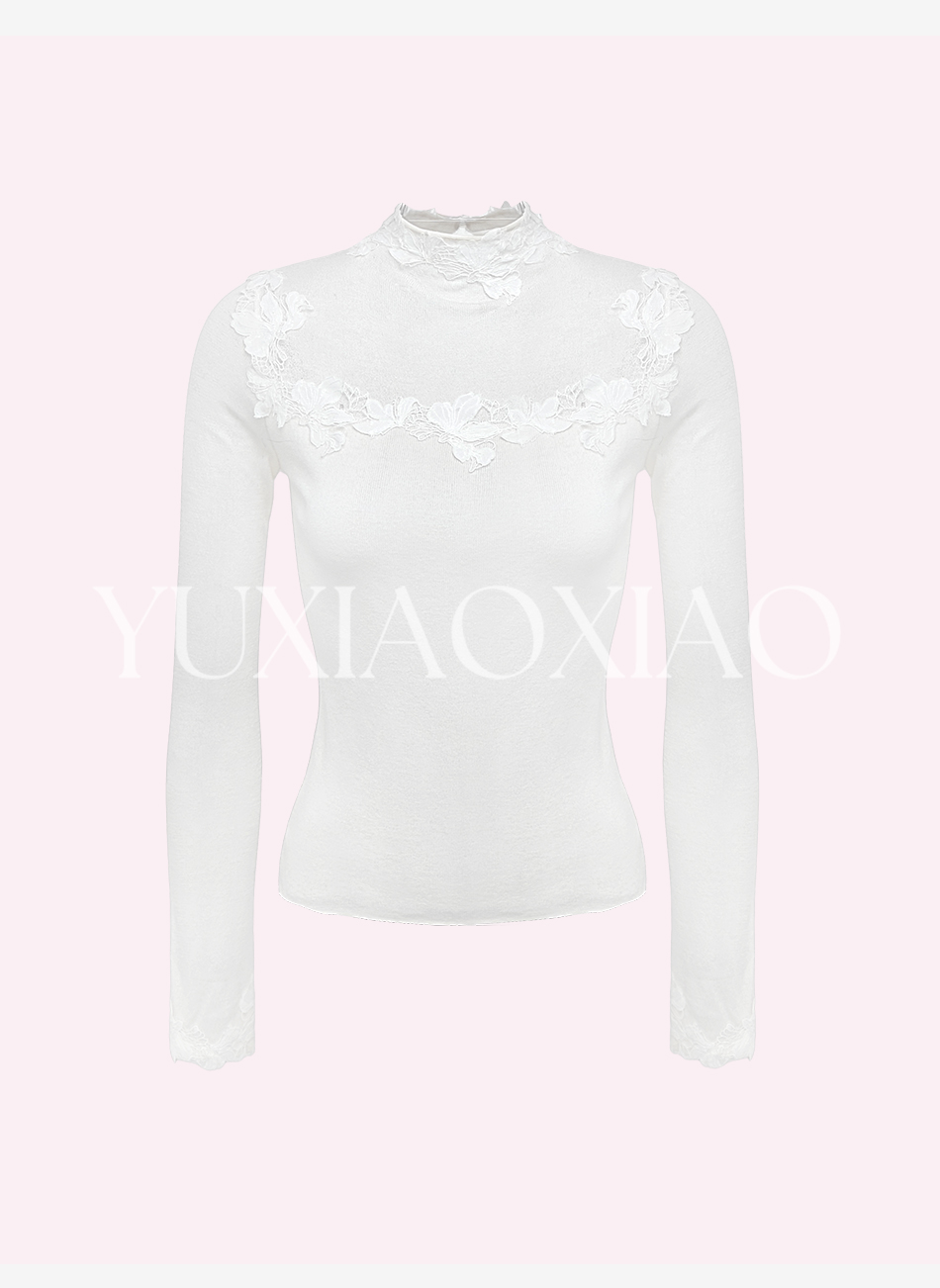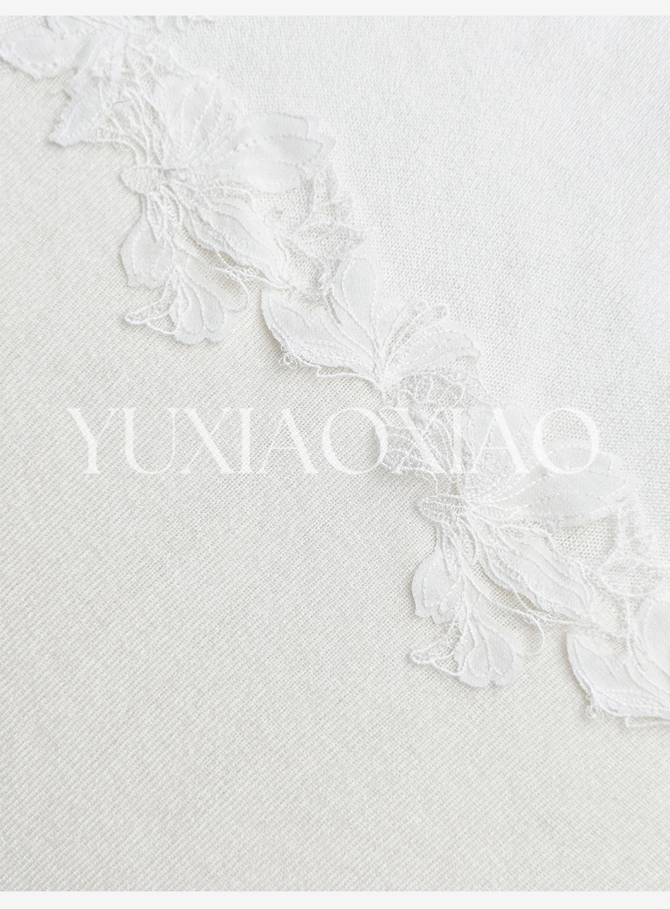 余潇潇【玉兰蝶梦】山羊绒醋酸天丝混纺定制刺绣花片半高领修身毛衣