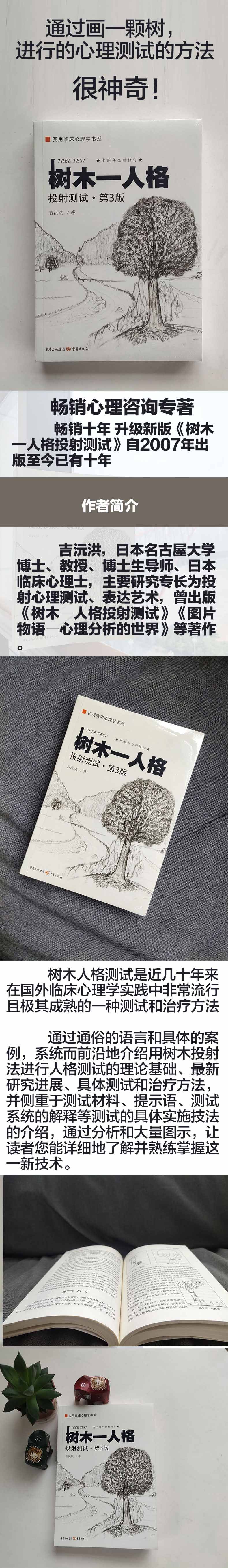 吉沅洪著的《树木-人格投射测试(第3版十周年全新修订)/实用临床心理学书系》在原作基础上,增加了近30%的科研论文,涉及“树木―人格测试”在中国施测时的信效度、对健康人群筛查的准确性、运用本手段开展咨询的中日两国的结果差异的比较研究,进一步增加了全书理论的科学性。
