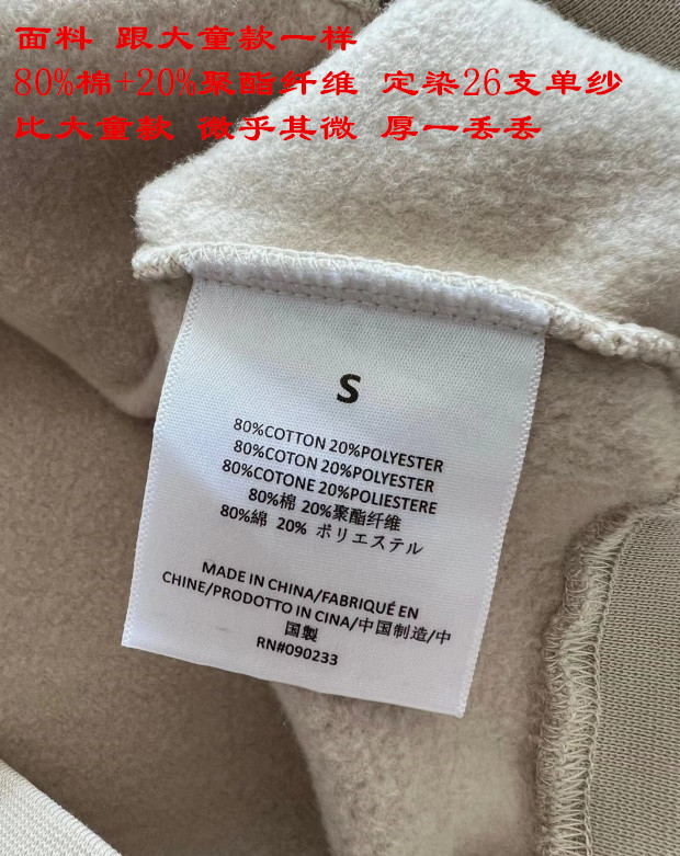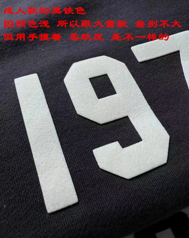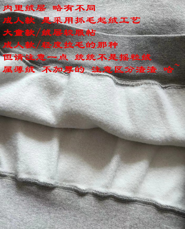 内里绒层 略有不同 成人款 采用抓毛起绒工艺 比大童款 要厚一丢丢吧