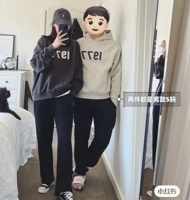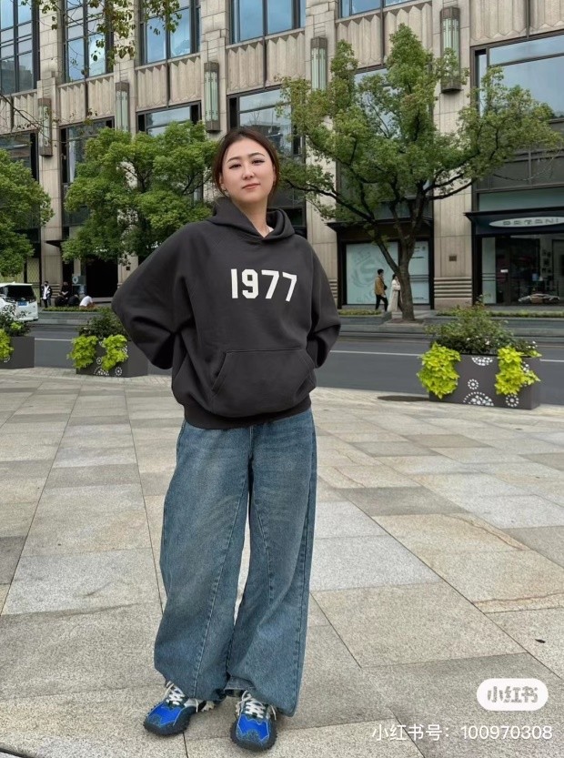 这两码 都属常规卫衣效果 小廓而已 适合配牛仔裤休闲裤