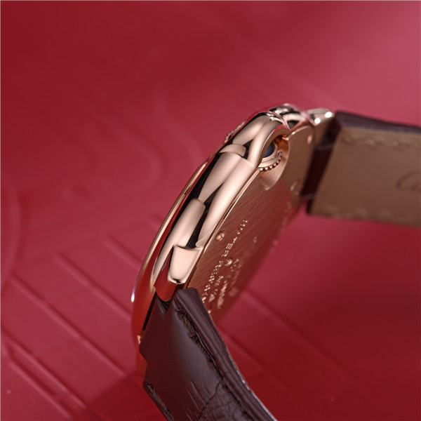 镜面 材质 | 蓝宝石水晶玻璃 | 表盘 | 18k玫瑰金表壳 镀银珠光扭索雕纹表盘,12枚罗马数字时标,剑形蓝钢指针 18k玫瑰金凹槽式表冠,镶嵌一颗凸圆形蓝宝石 密底 |