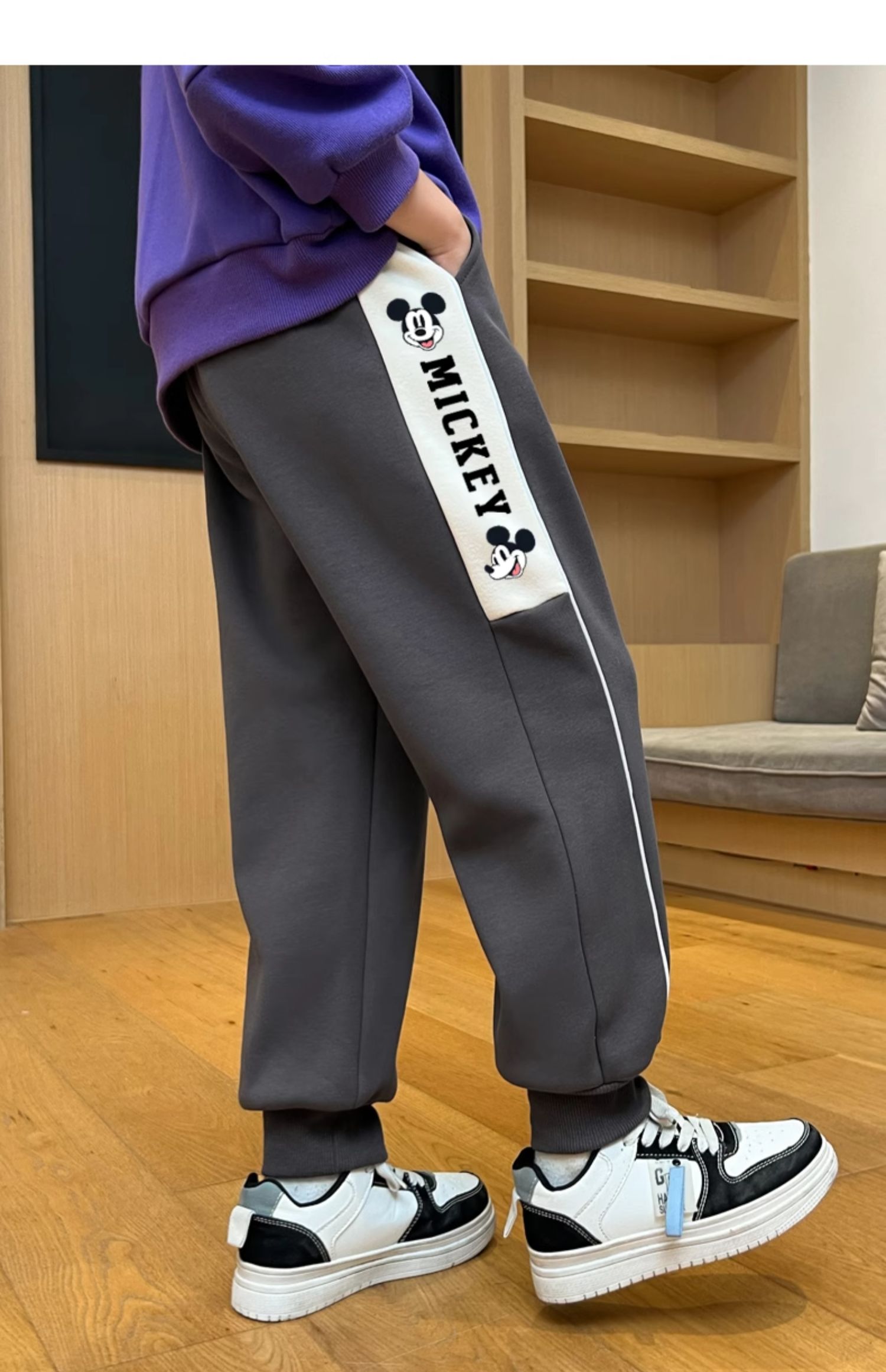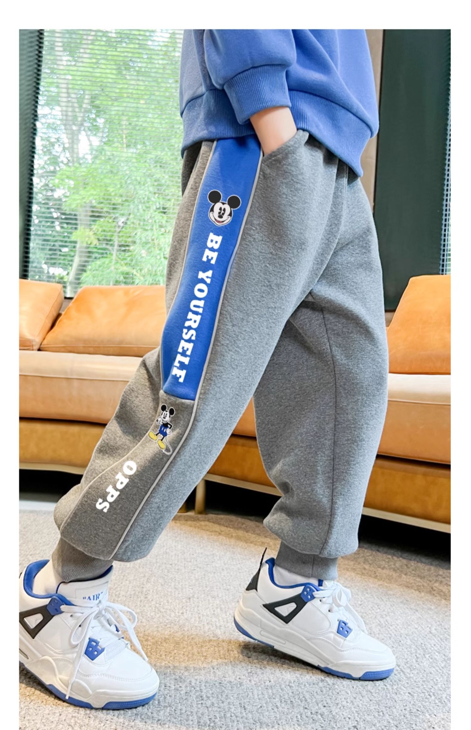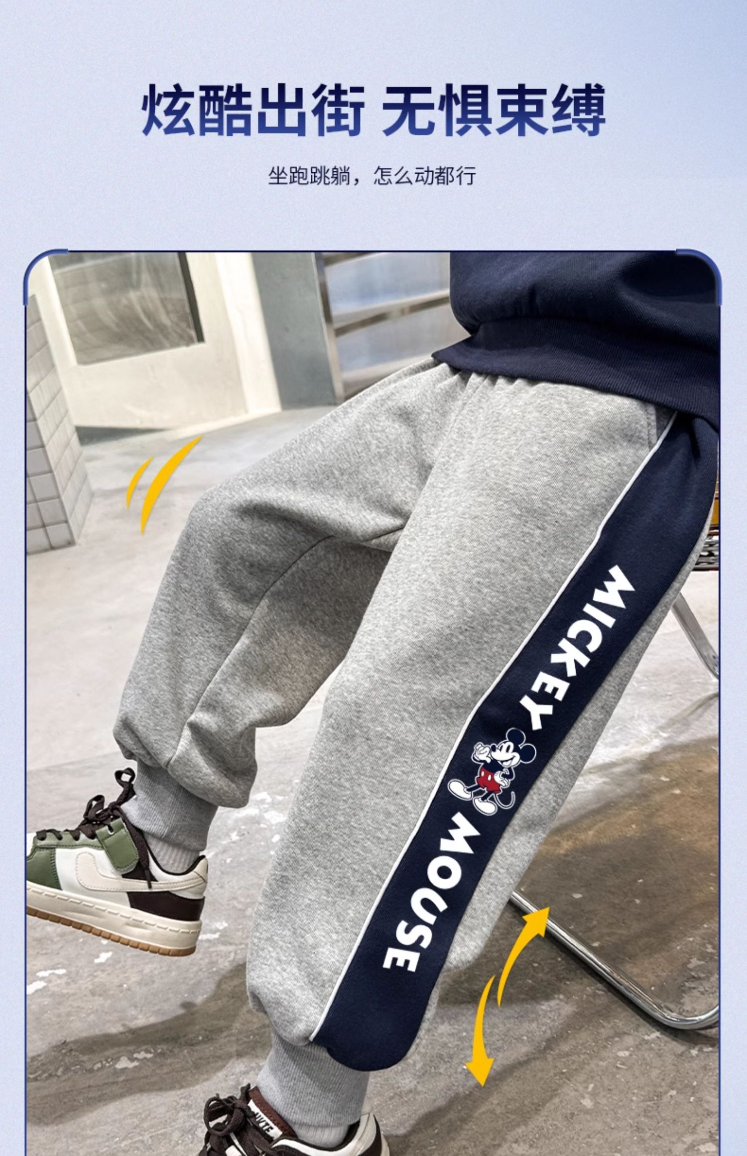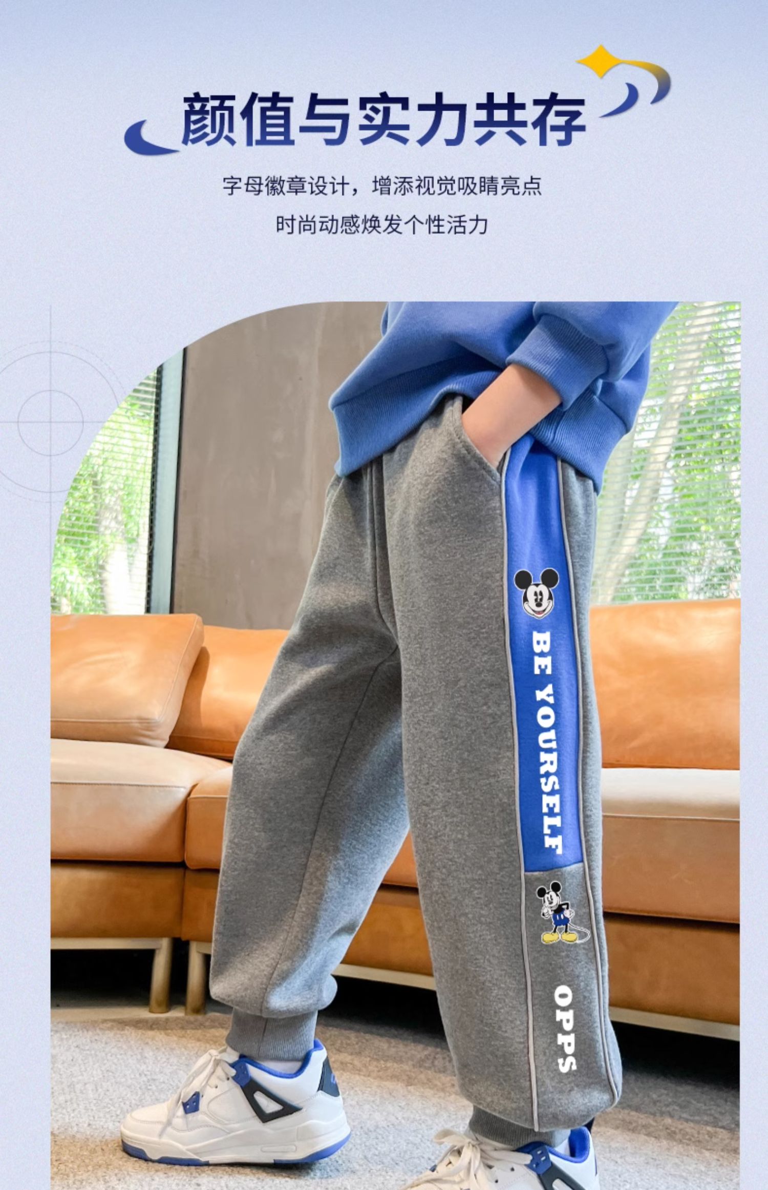 迪士尼男童裤子春秋款2024新款儿童运动裤炸街卫裤秋装帅气休闲裤