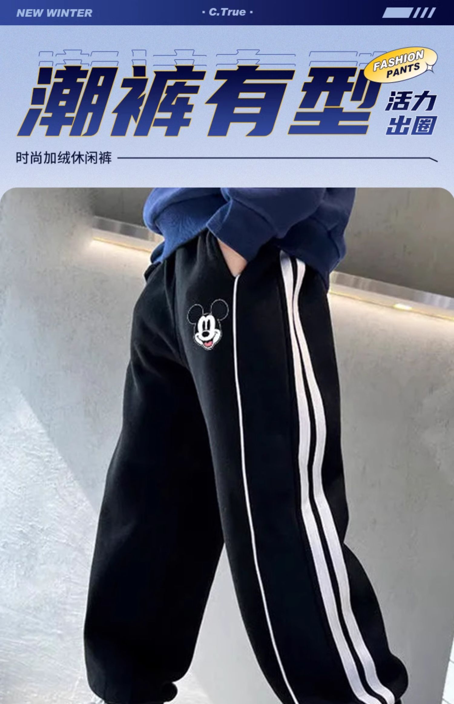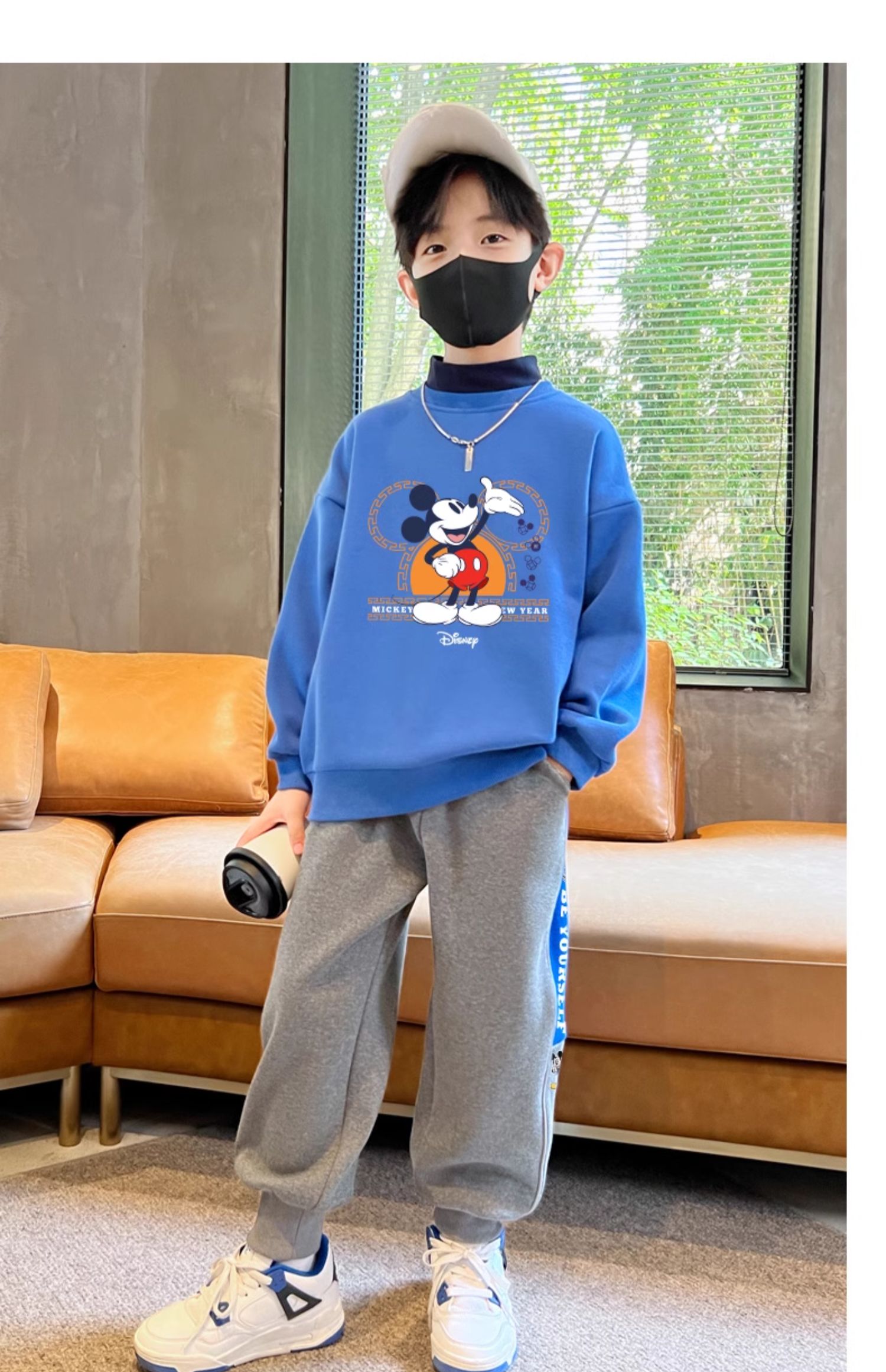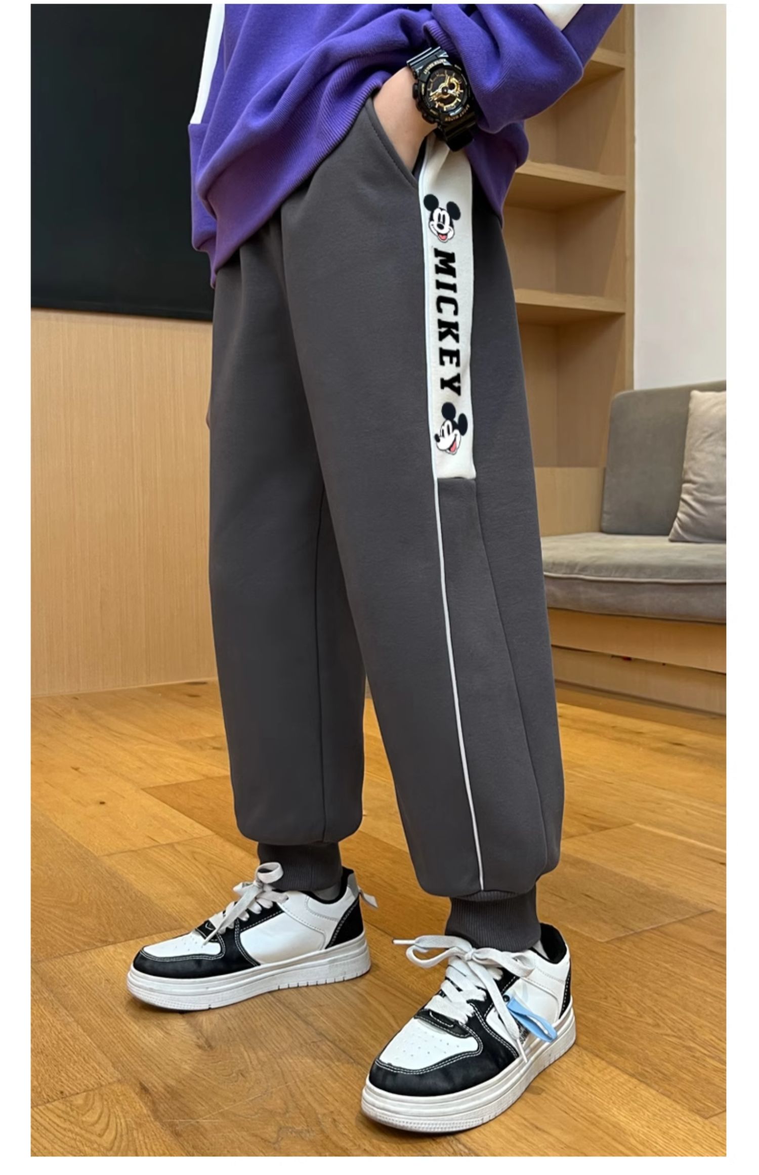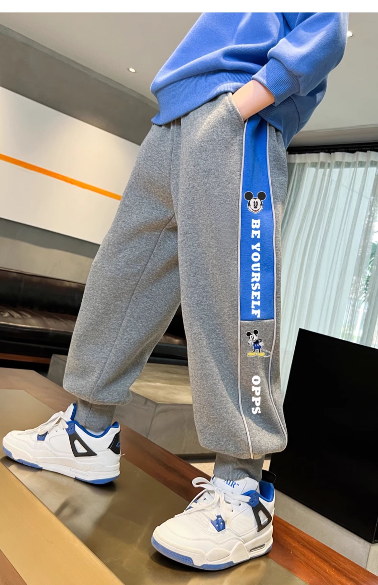 迪士尼男童裤子春秋款2024新款儿童运动裤炸街卫裤秋装帅气休闲裤