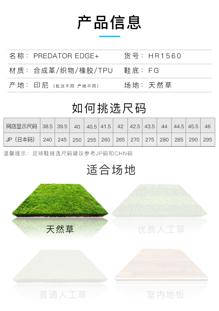 ADIDAS/阿迪达斯 PREDATOR EDGE+ FG猎鹰高端FG足球鞋HR1560