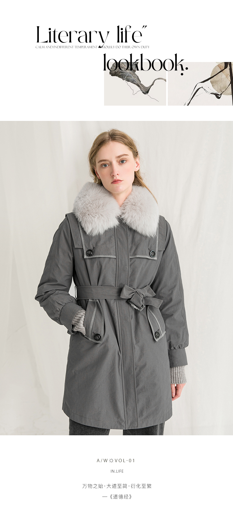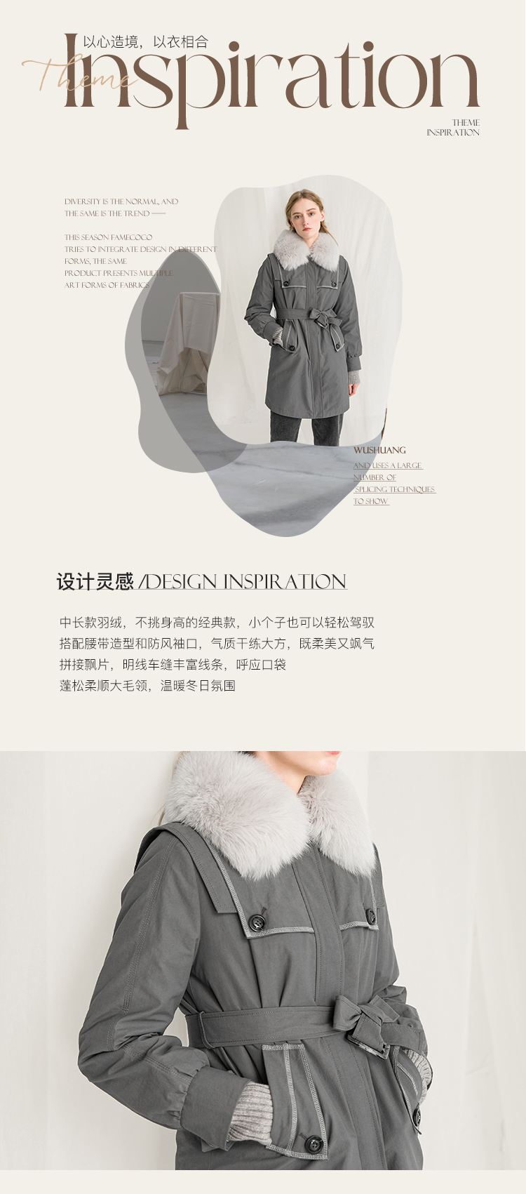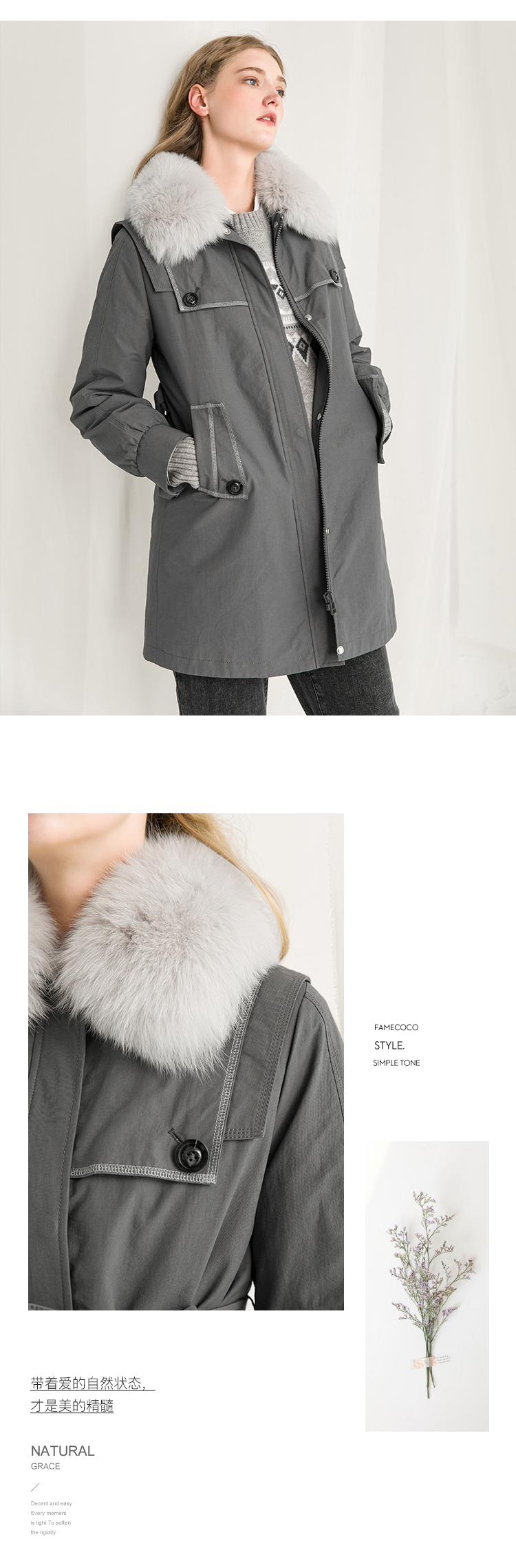 famecoco范可儿羽绒服外套保暖大毛领外套系带收腰F218AD003
