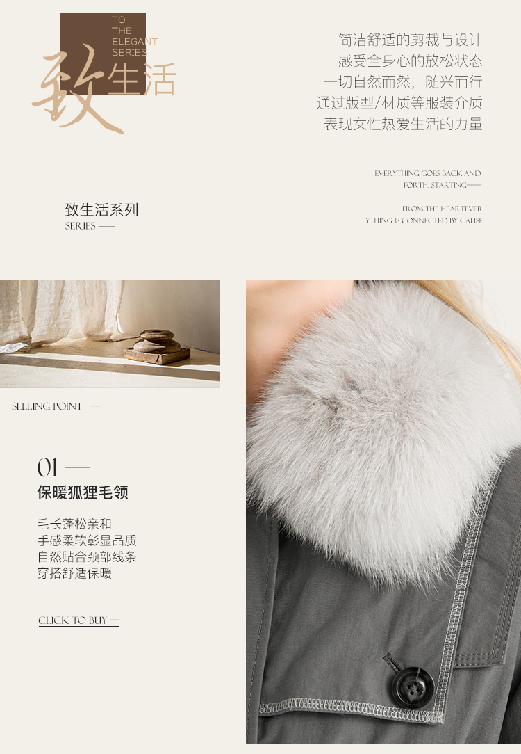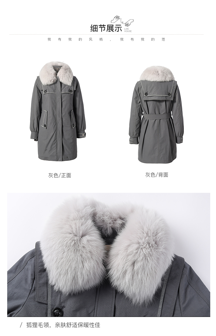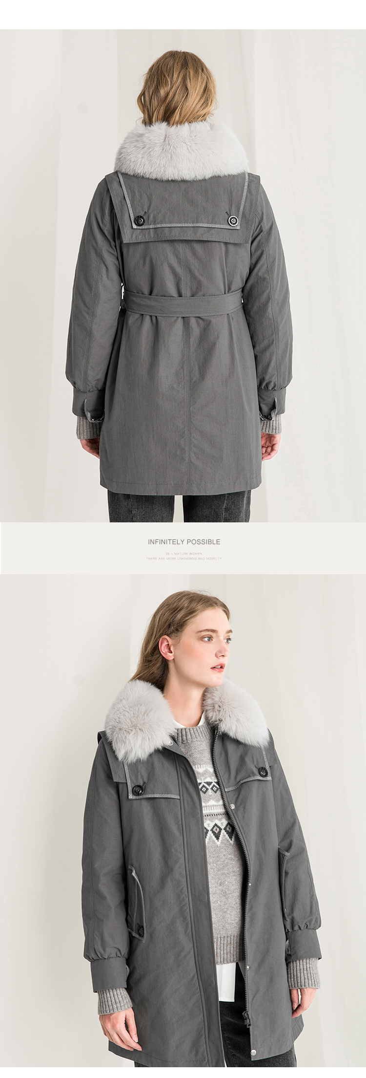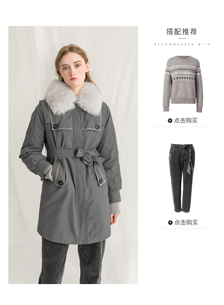 famecoco范可儿羽绒服外套保暖大毛领外套系带收腰F218AD003