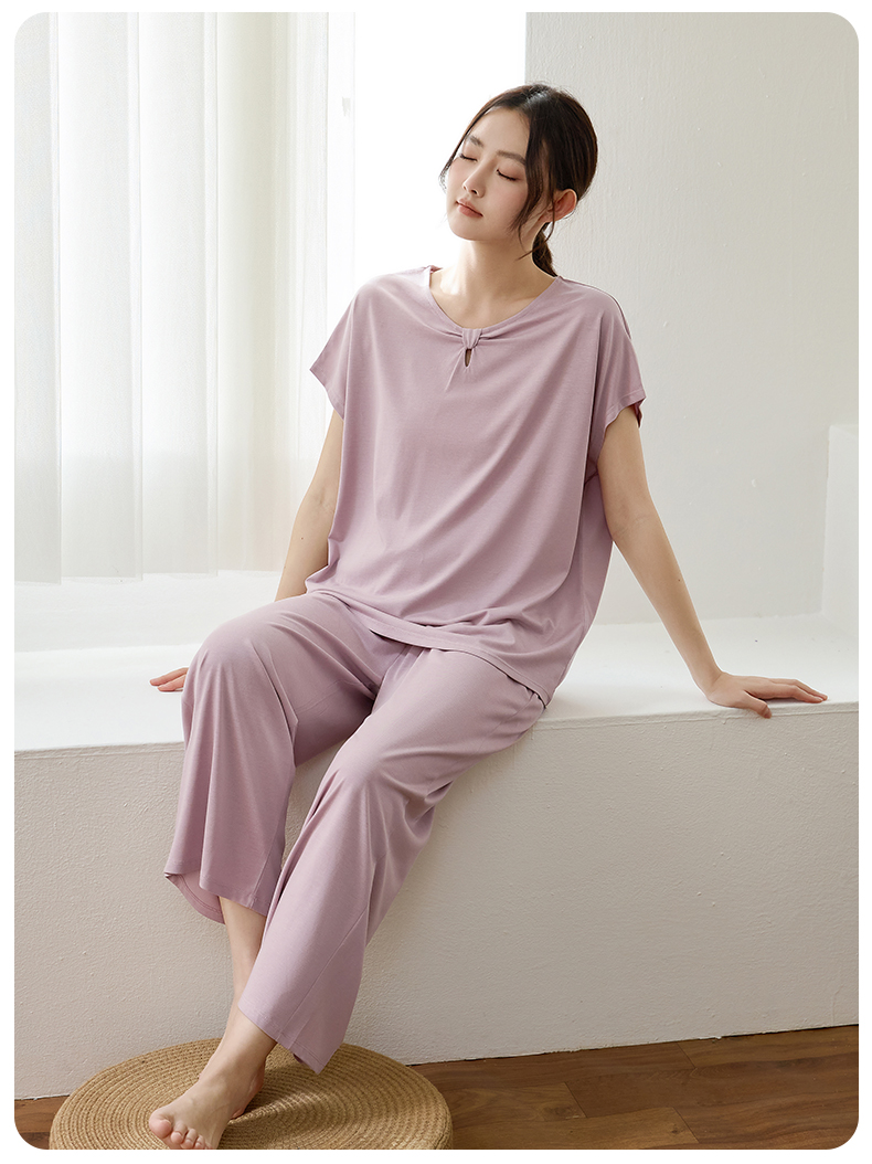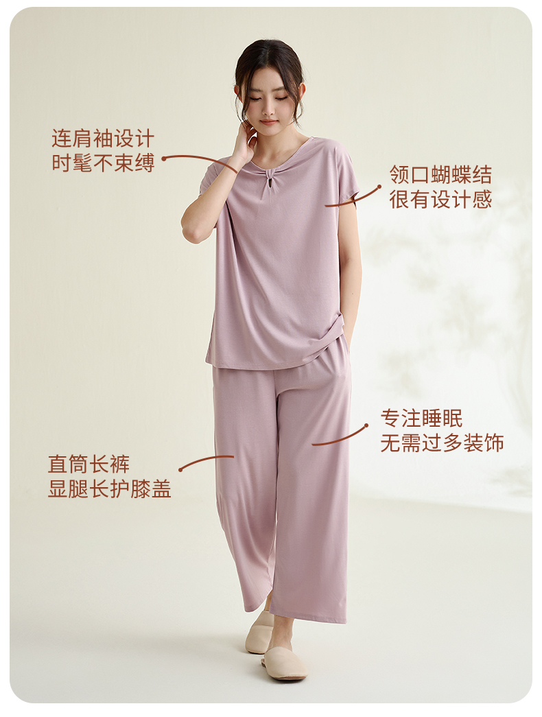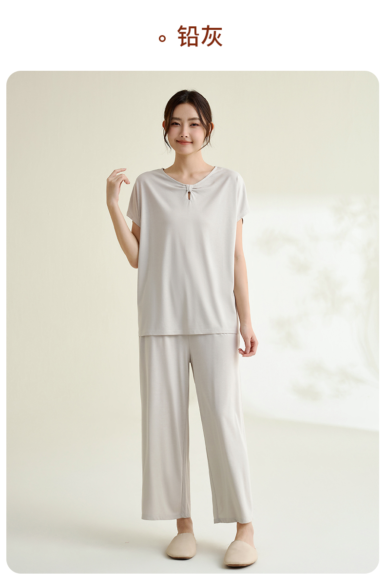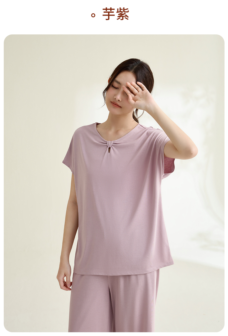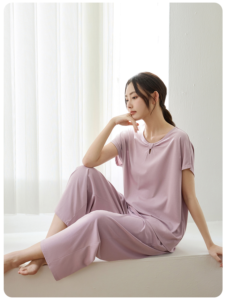 康妮雅睡衣家居服女式短袖中裤套头套装
