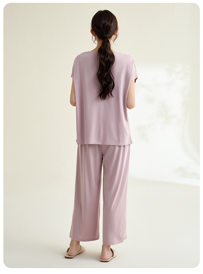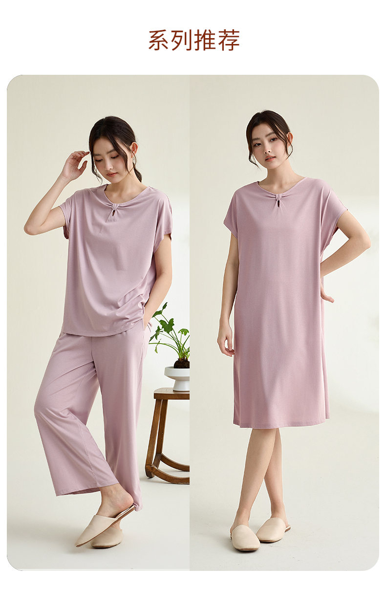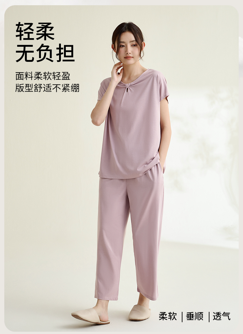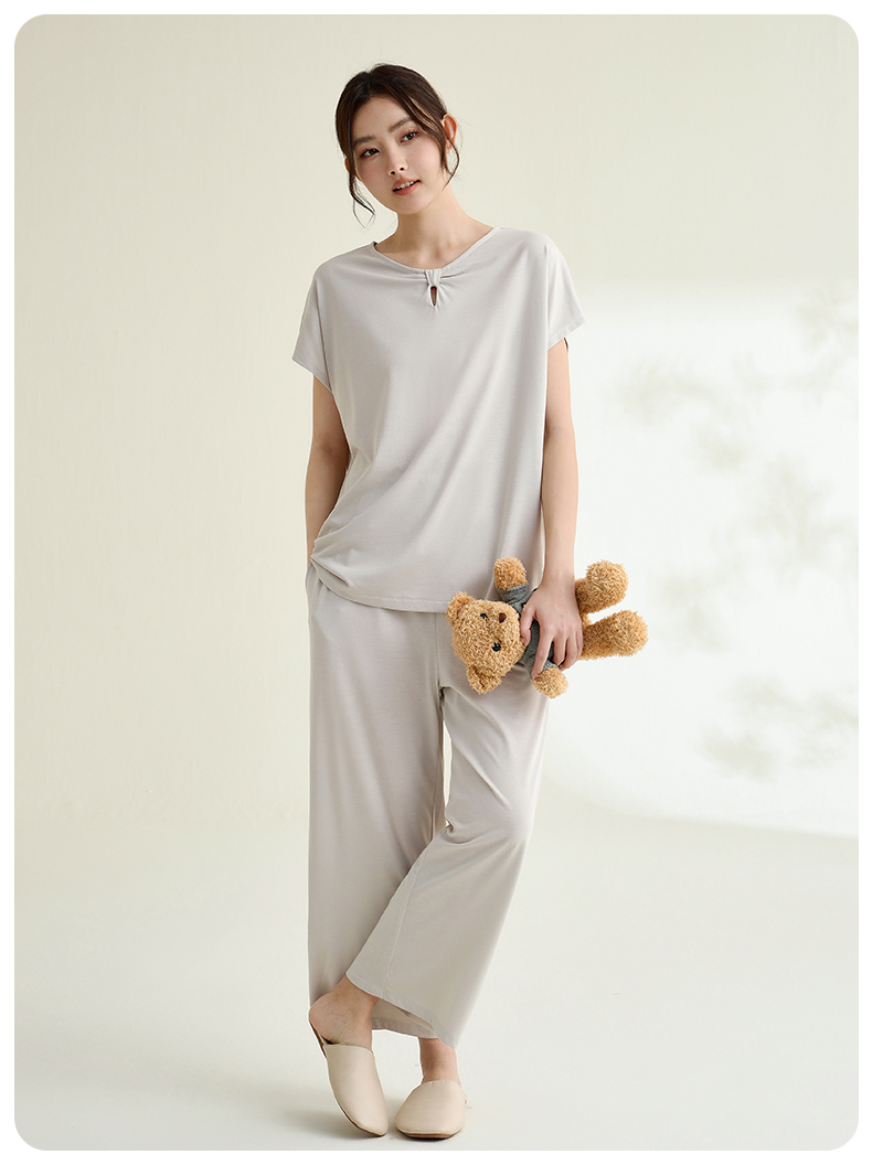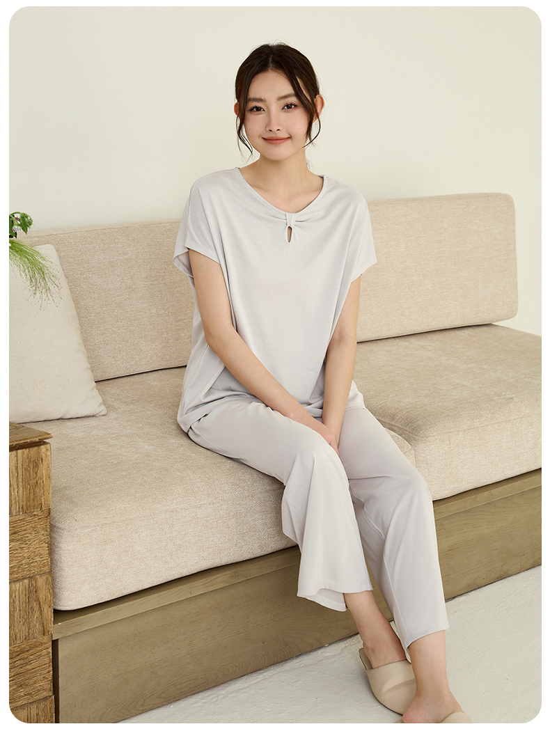 康妮雅睡衣家居服女式短袖中裤套头套装