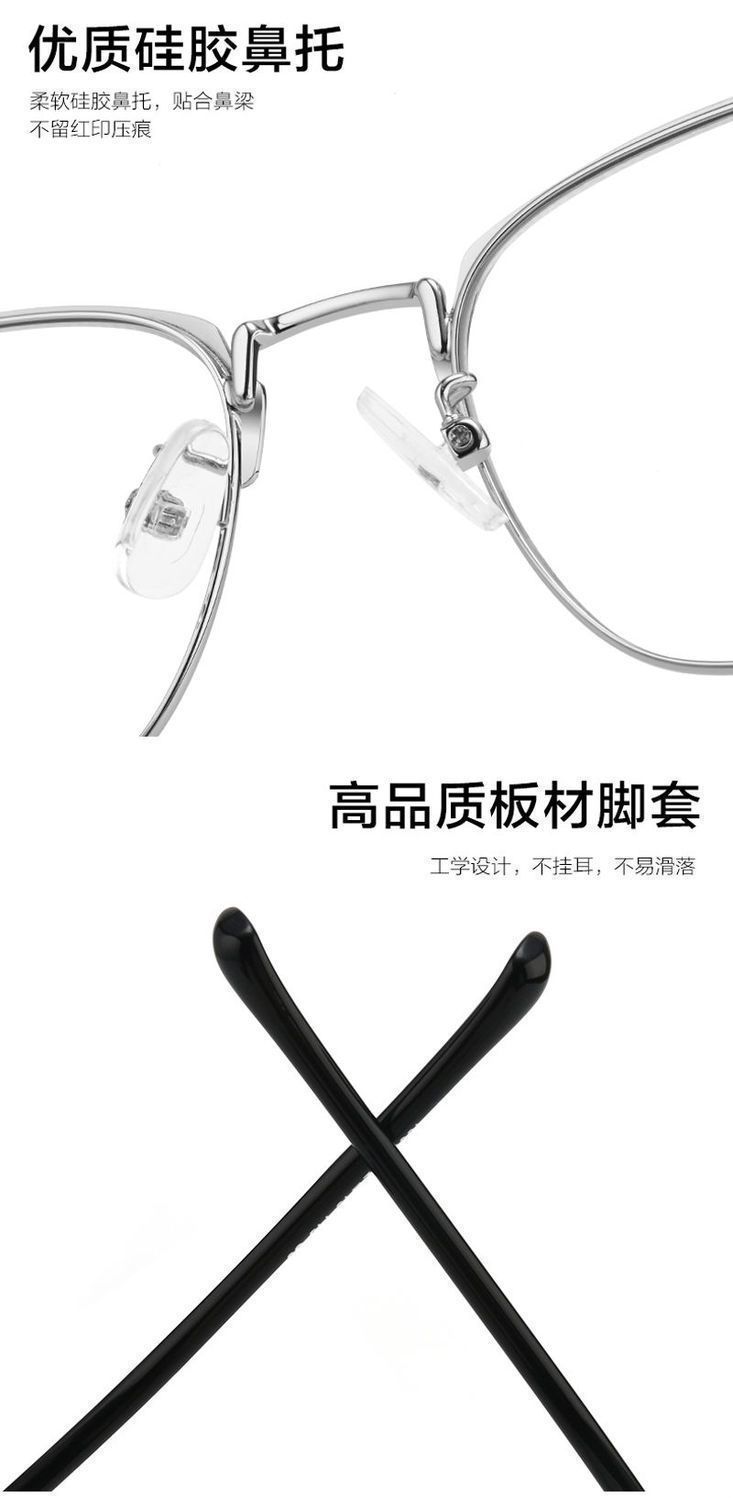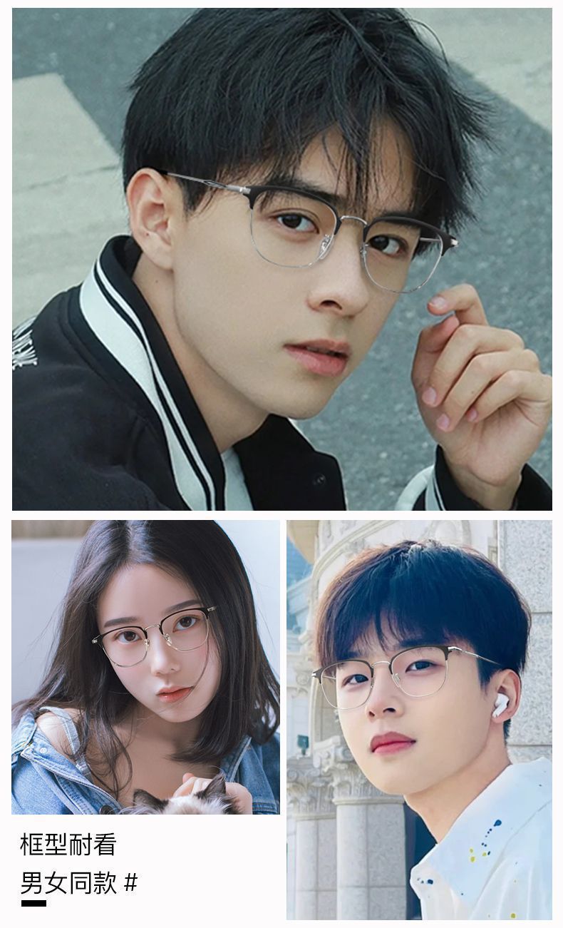 【赠送盒子!框型耐看】硅胶鼻孔,贴合鼻梁,男女同款文艺眼镜框理工男近视可配高颜值眉线半框素颜防蓝光小红书平光镜。rd