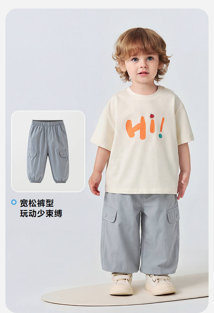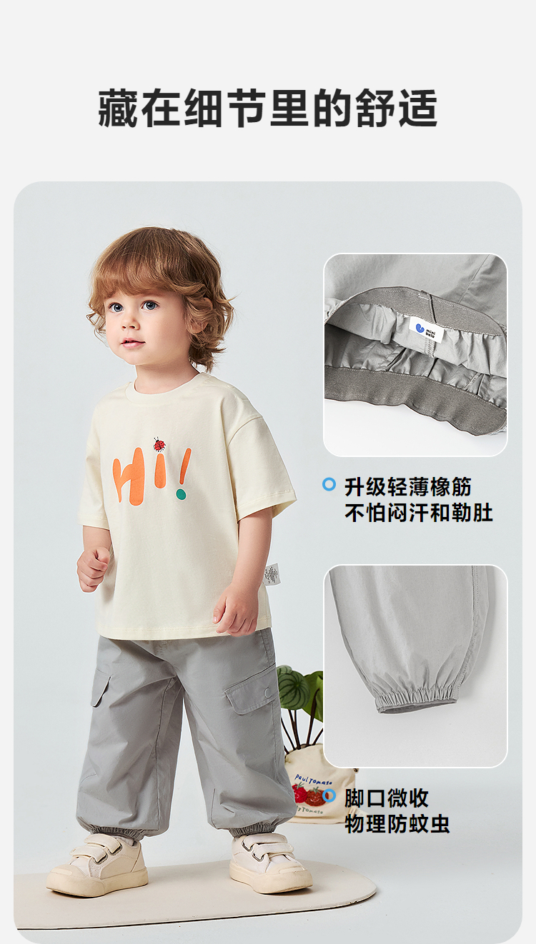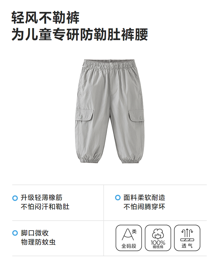 [轻风不勒裤]迷你巴拉男童裤子夏纯棉柔软透气裤腰可调节防蚊长裤