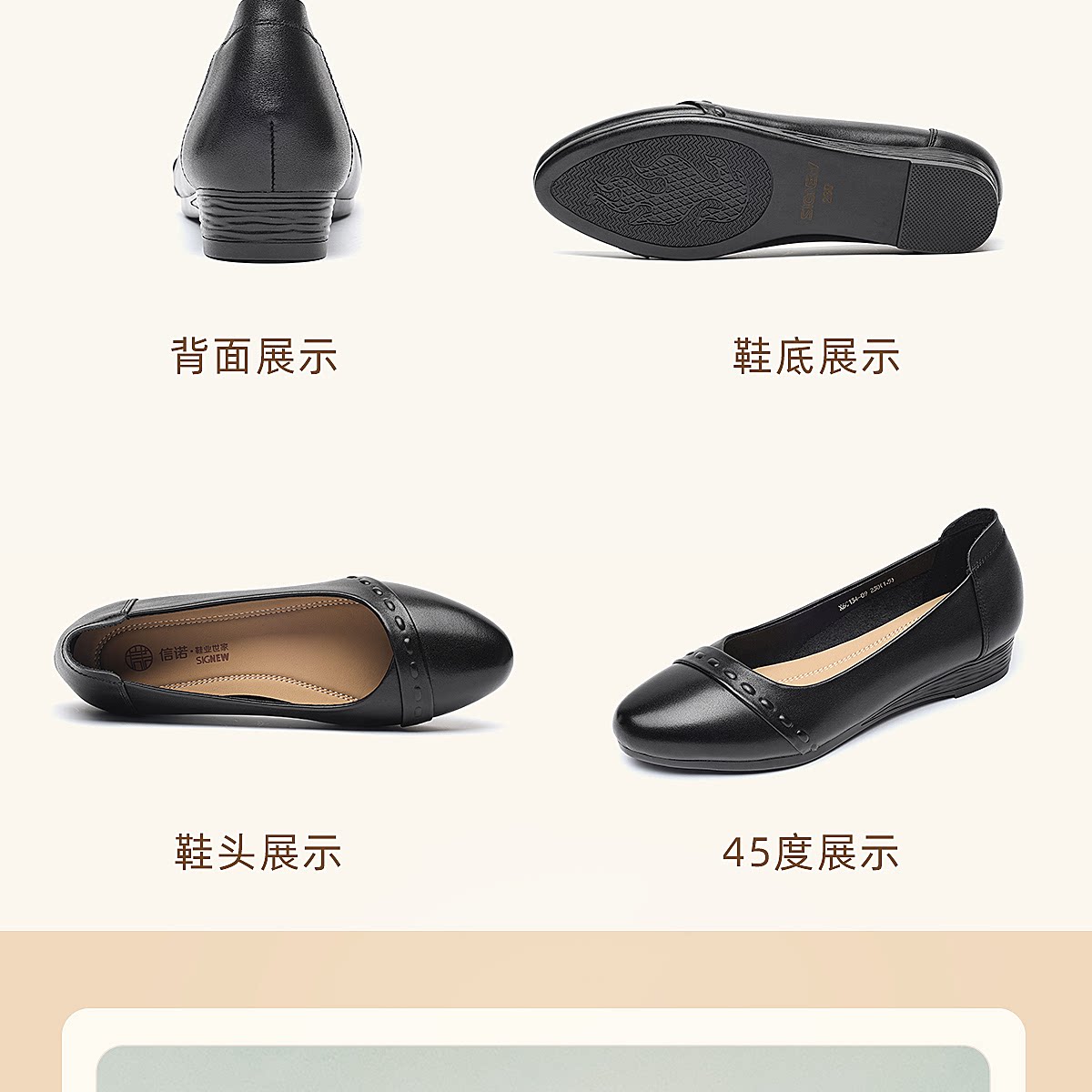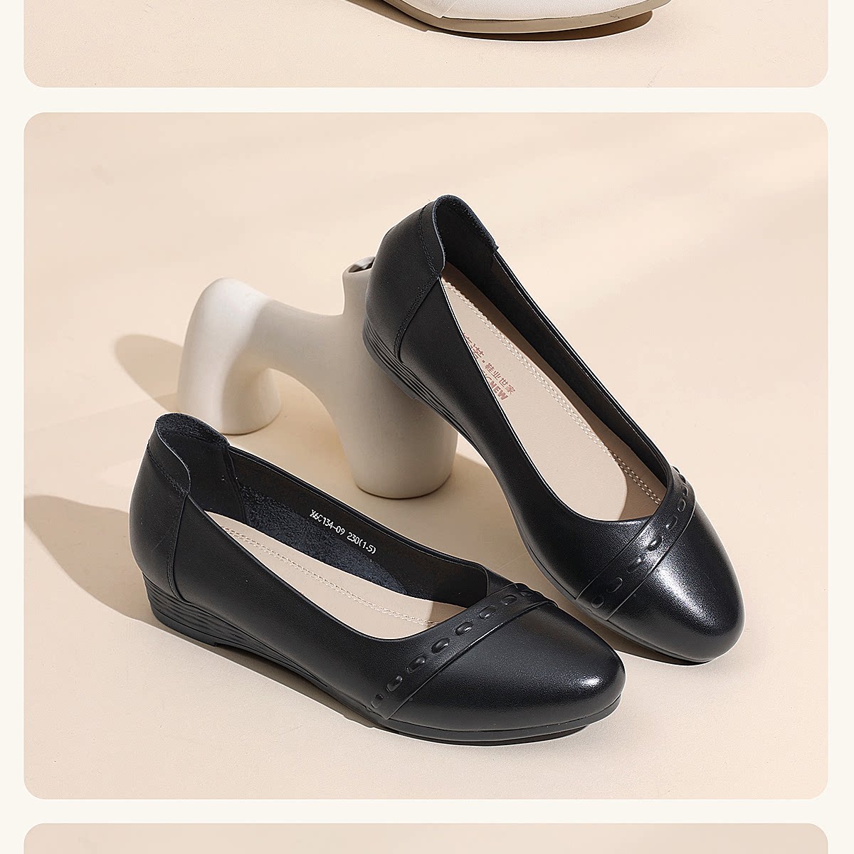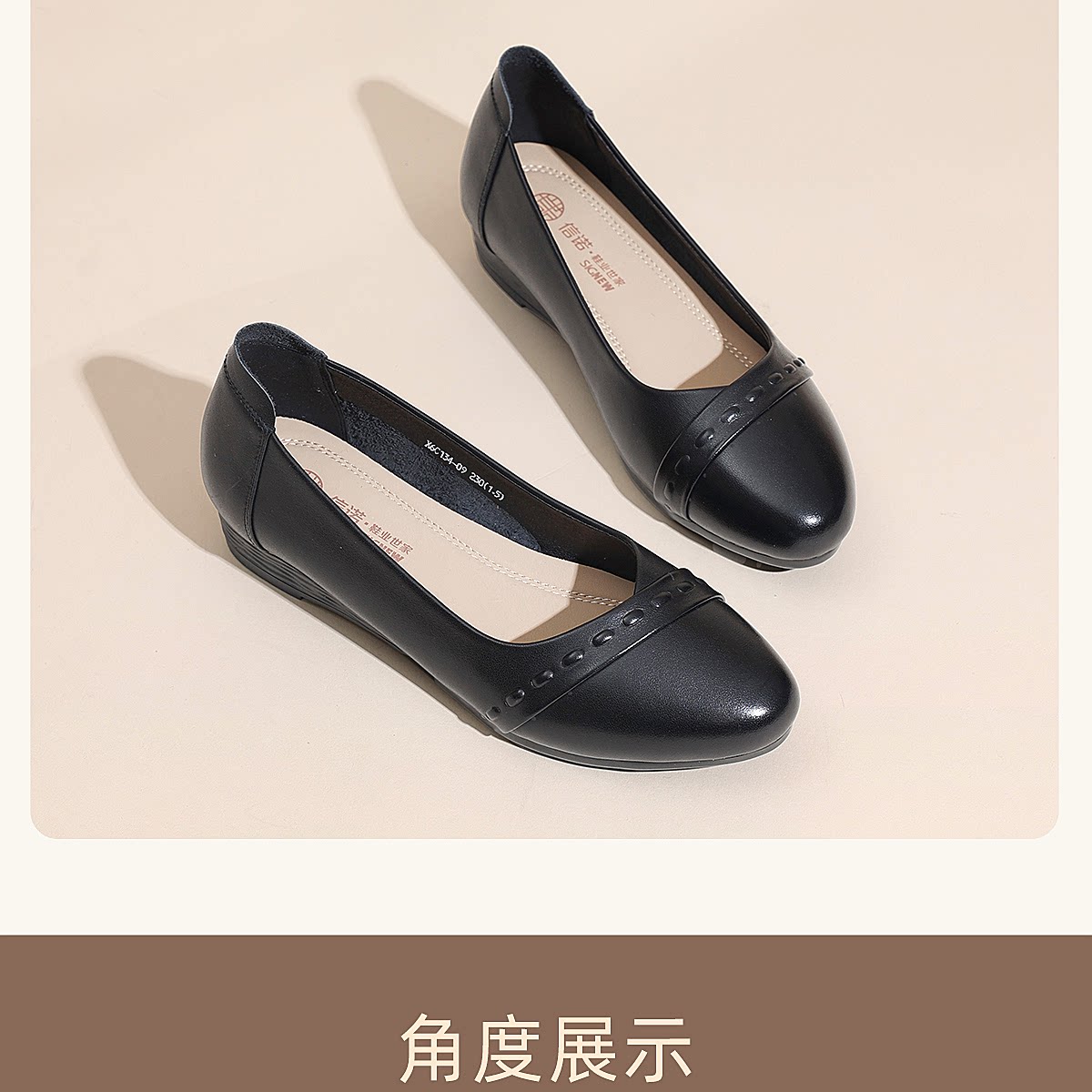 极简风真皮浅口单鞋女低跟软底舒适轻便妈妈鞋黑色通勤鞋X6C134-09