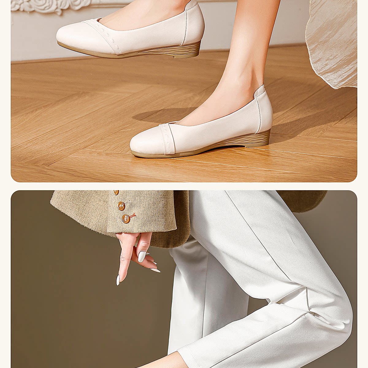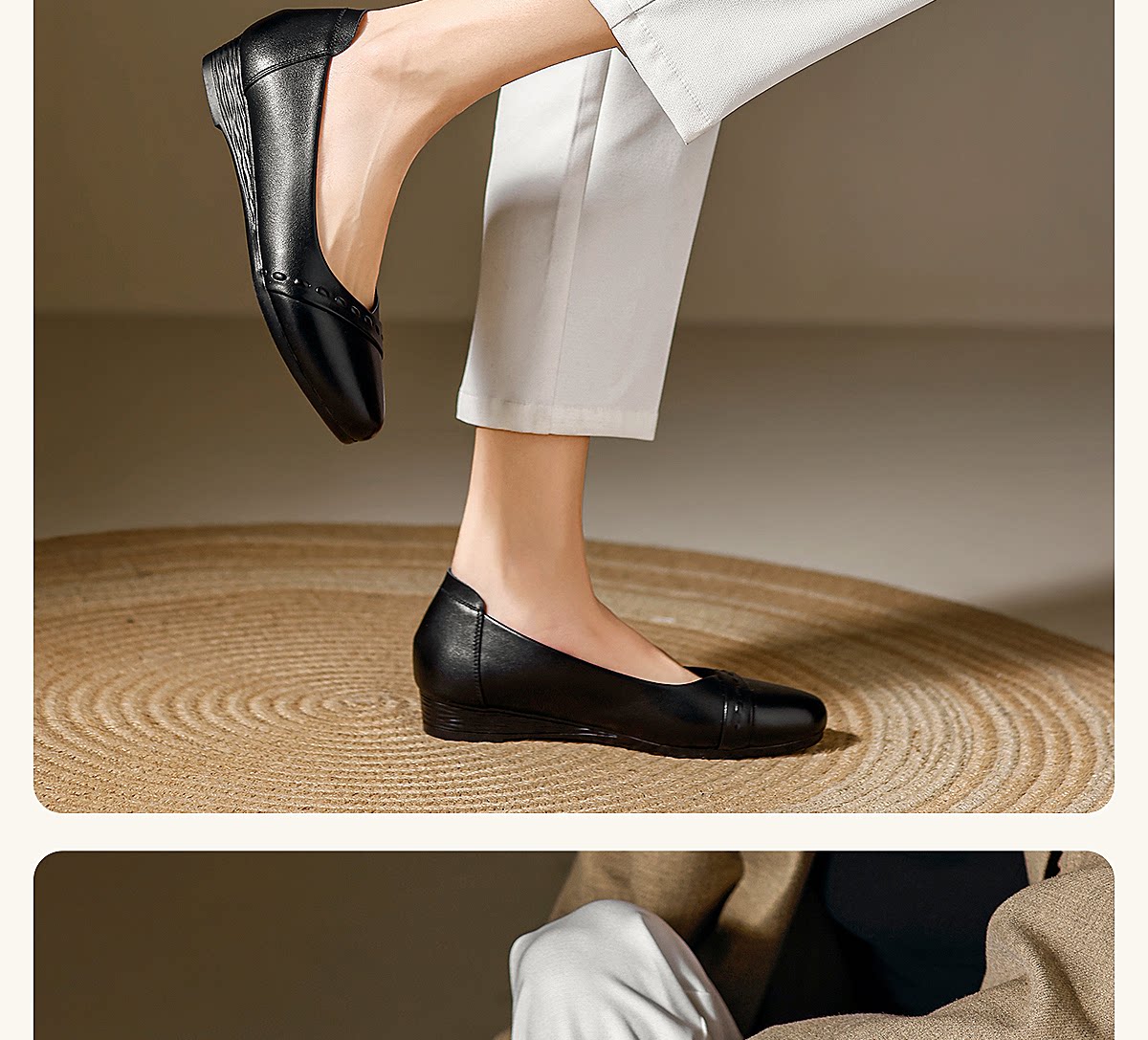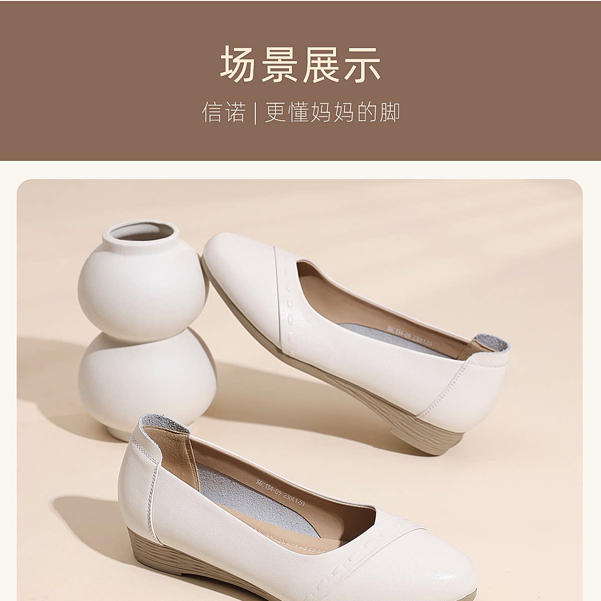 极简风真皮浅口单鞋女低跟软底舒适轻便妈妈鞋黑色通勤鞋X6C134-09