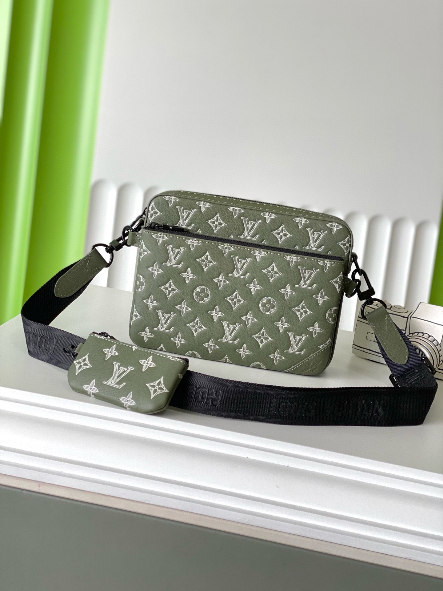 夏季特惠💰980 原单LV M12490 尺寸:25×18.5×7cm TRIO 全皮三件套邮差包 变码芯片