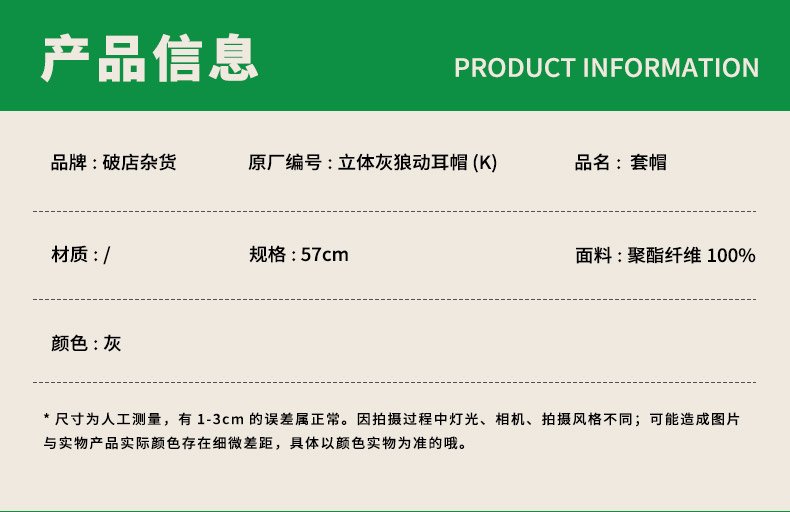 立体灰狼动耳帽套帽帽子-纪念日百货门店同款165345023